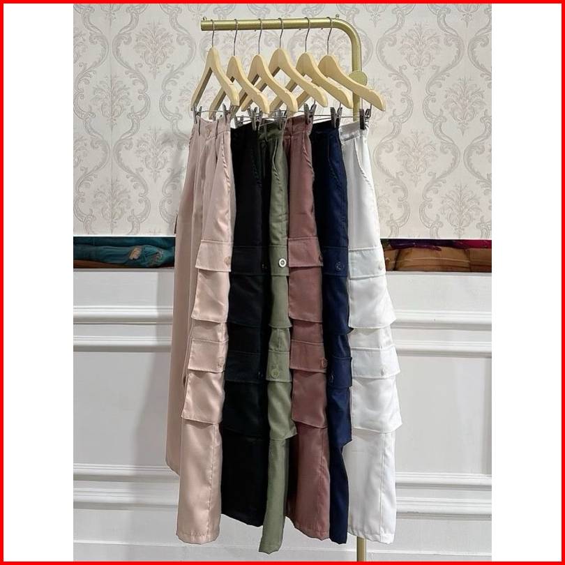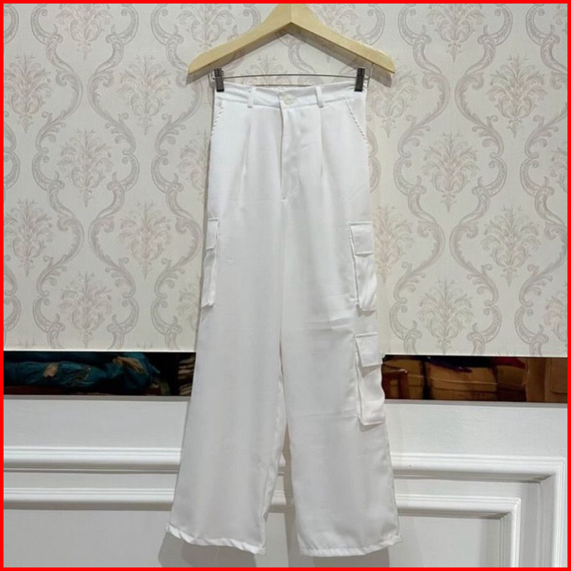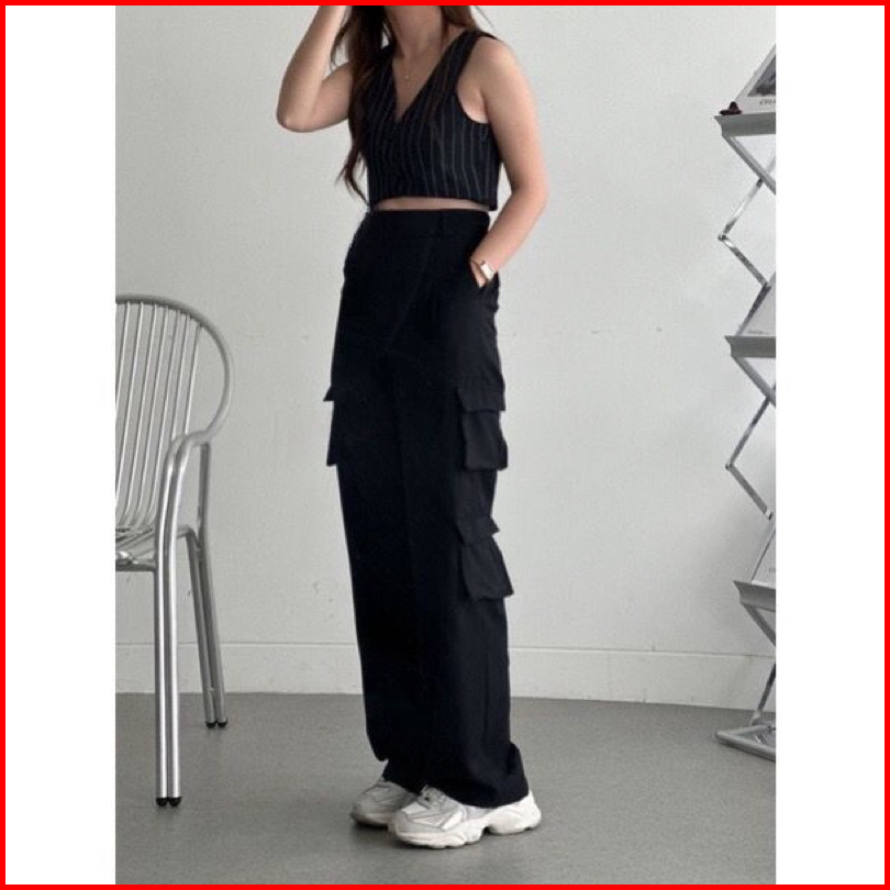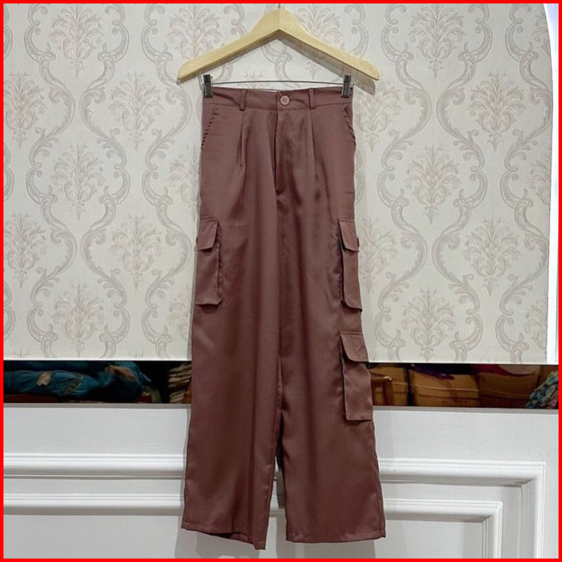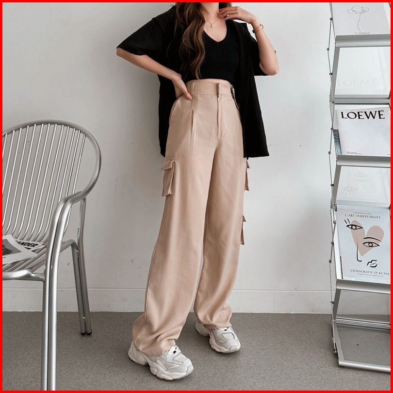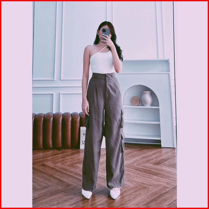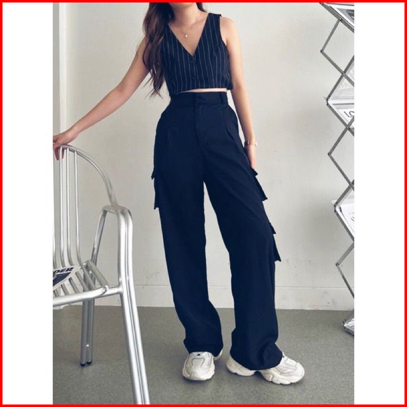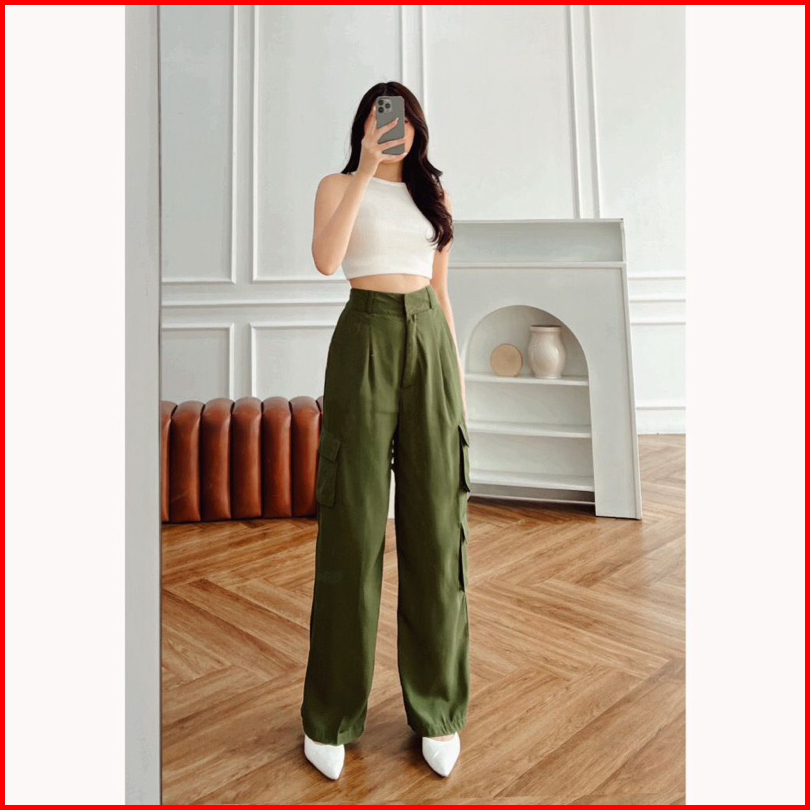 C098-cargo Loose Pants Highwaist Petite Celana Kargo Wanita