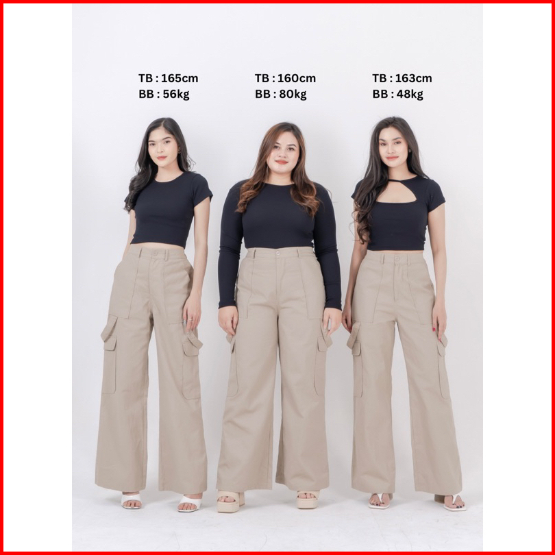 Celana Cargo Wanita Highwaist Vintage Baggy Casual Straight Wide Leg Celana Kulot Premium Wanita Street Style Polos Panj