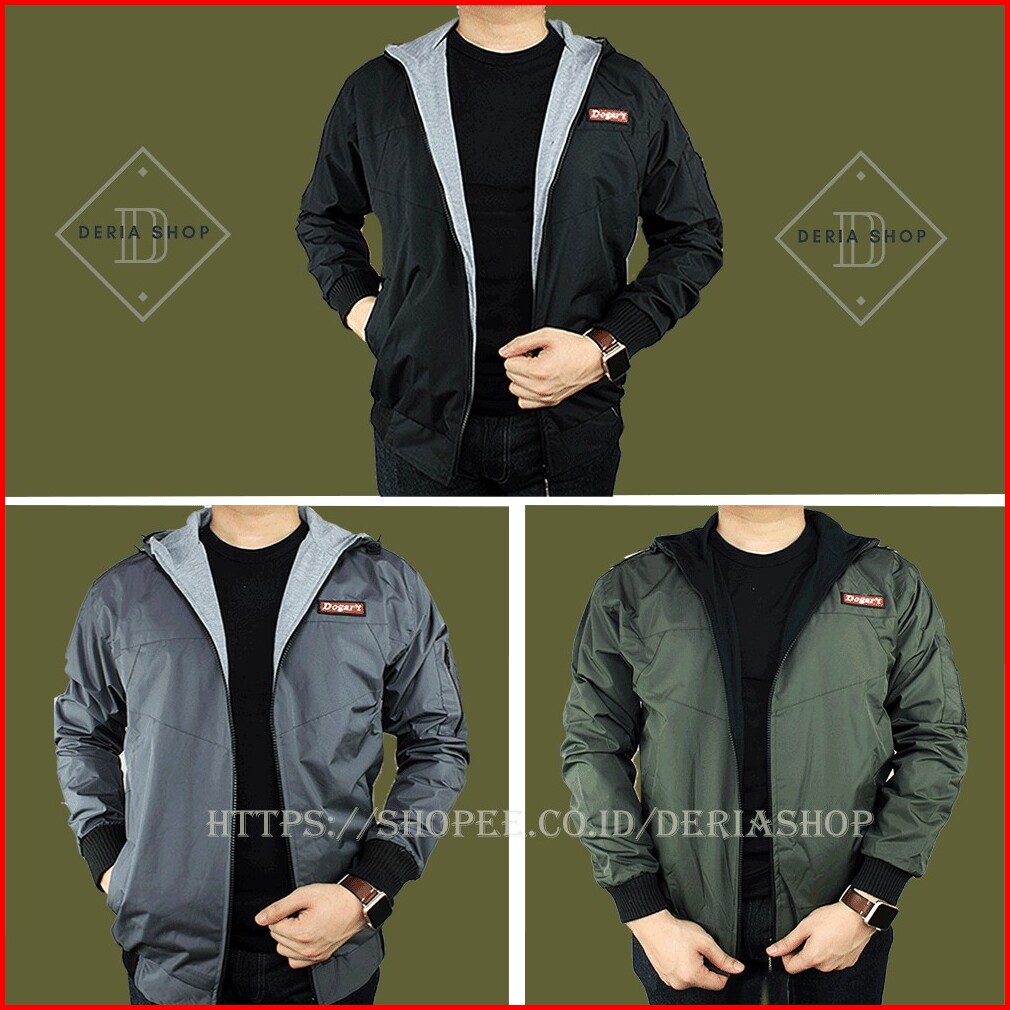 Jaket Bomber Bolak Balik Pria Hoodie Murah Dewasa Anak Jacket Cowok Bahan Taslan Pakai Topi Anti Air Angin Jeket Cowo Fa