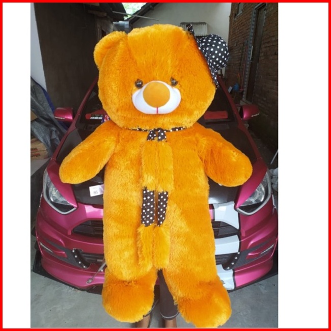 Boneka Teddy Bear Jumbo Boneka Beruang Jumbo Topi Syal Coklat Bule Grosir Boneka