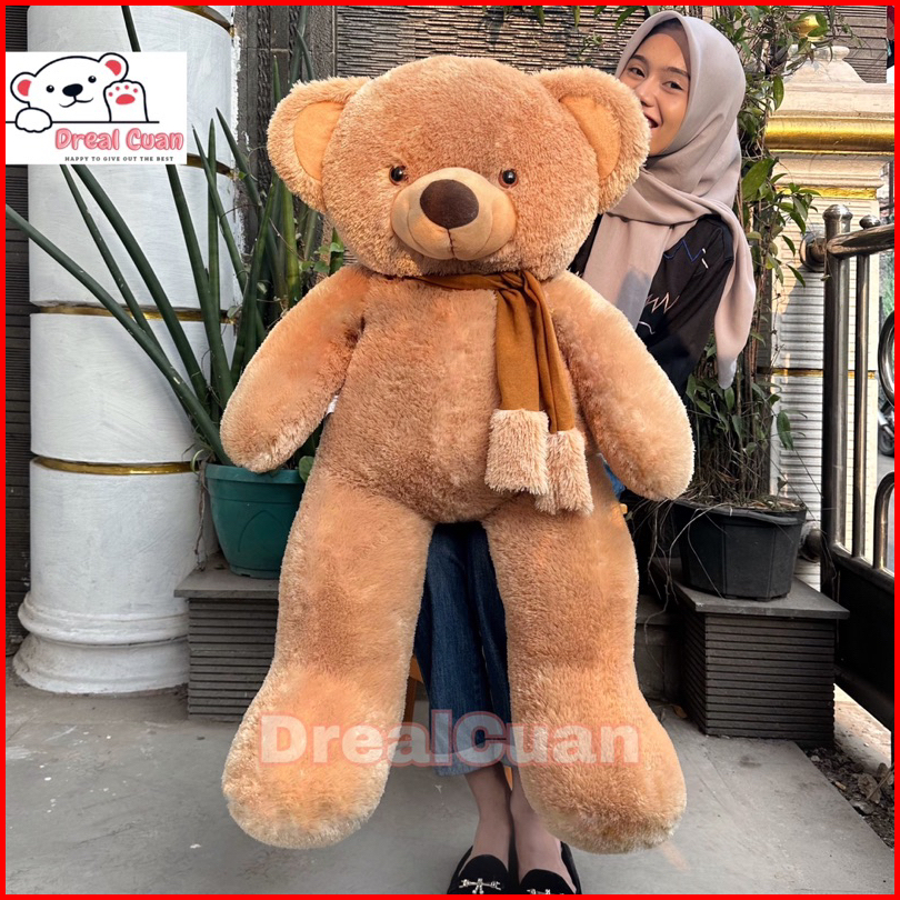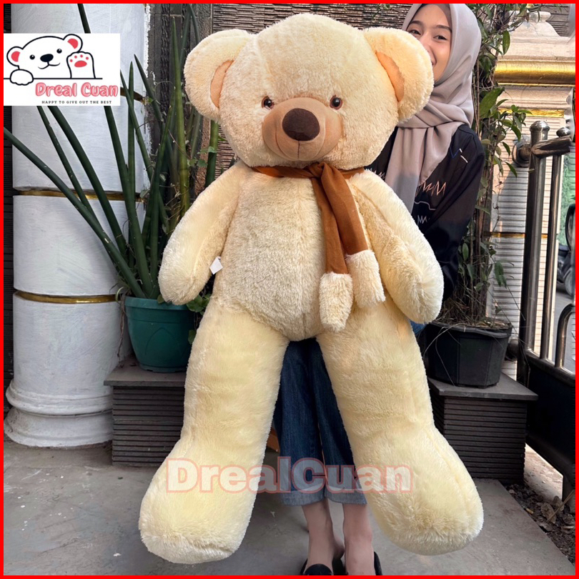 Boneka Teddy Bear Beruang Fluffy Syal Polos Besar Jumbo 1 Meter Premium