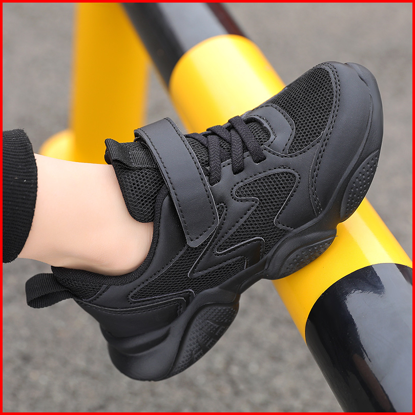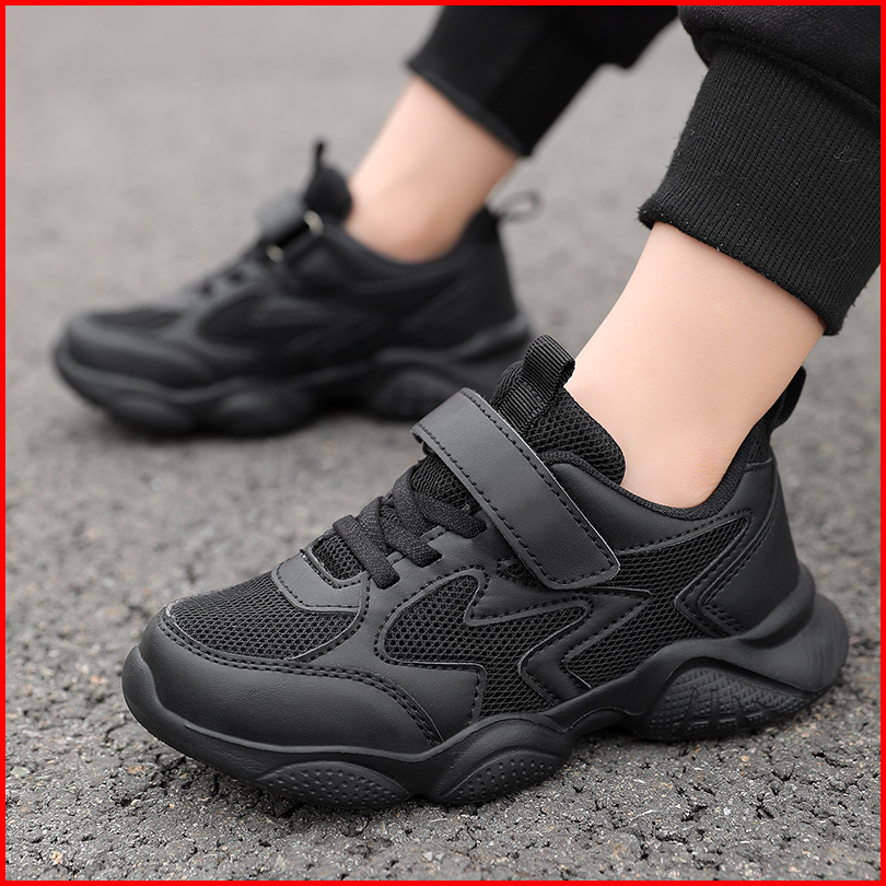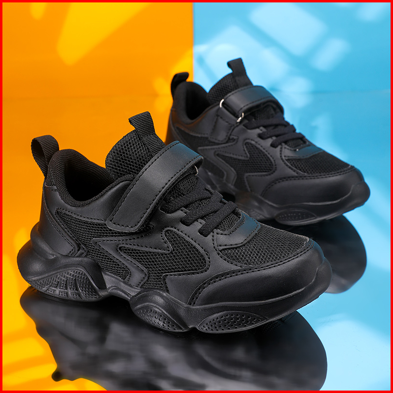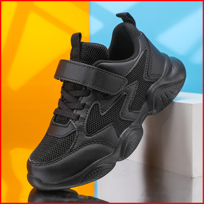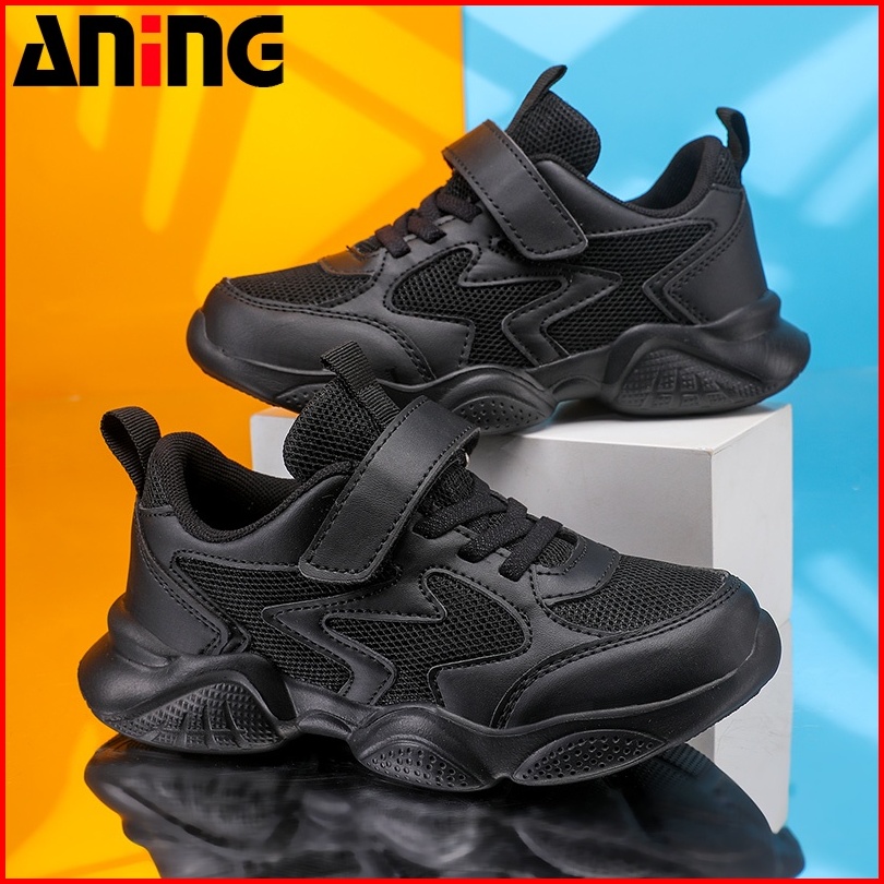 Aningaingboy-sepatu Sekolah Anak Ukuran Sneakers Hitam Velcro Sepatu Anak-anak 28-37 Full Hitam