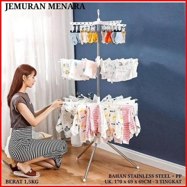 Trs - Jemuran Menara Lipat Jemuran Pakaian Pengiring Pakaian