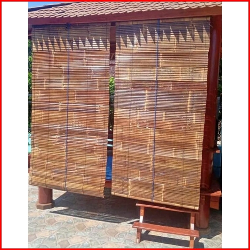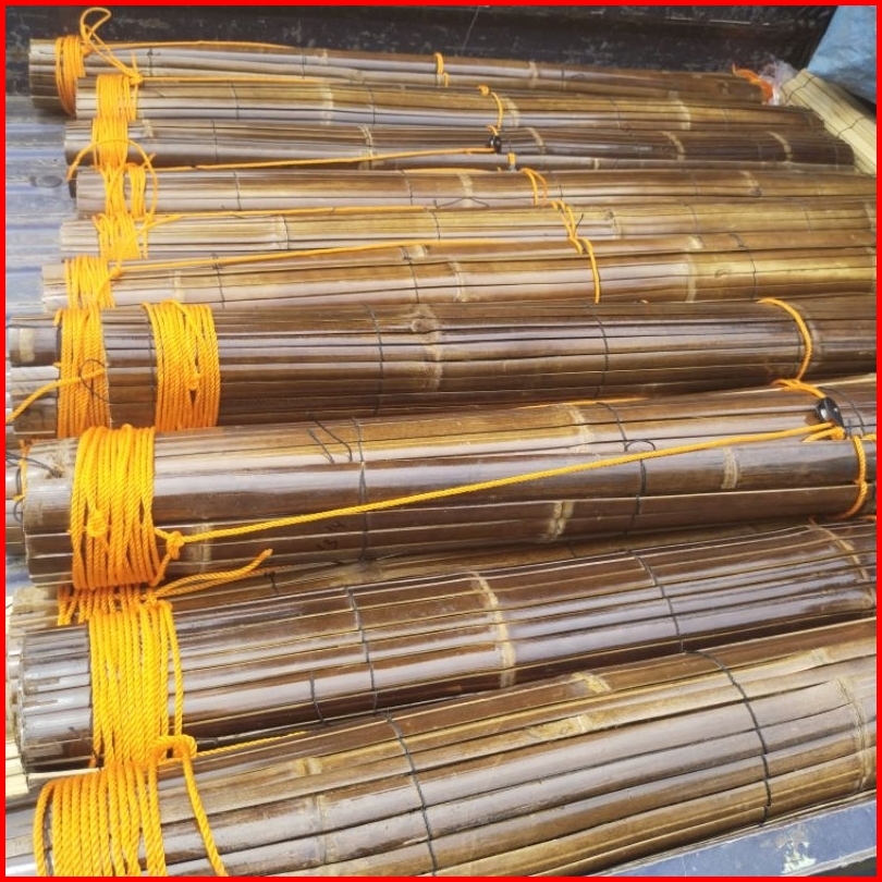 Tirai Bambu Hitam L1x2m L1x2 5m 1x1 5m 80x200 Vernis Plitur Lengkap Katrol Gulung