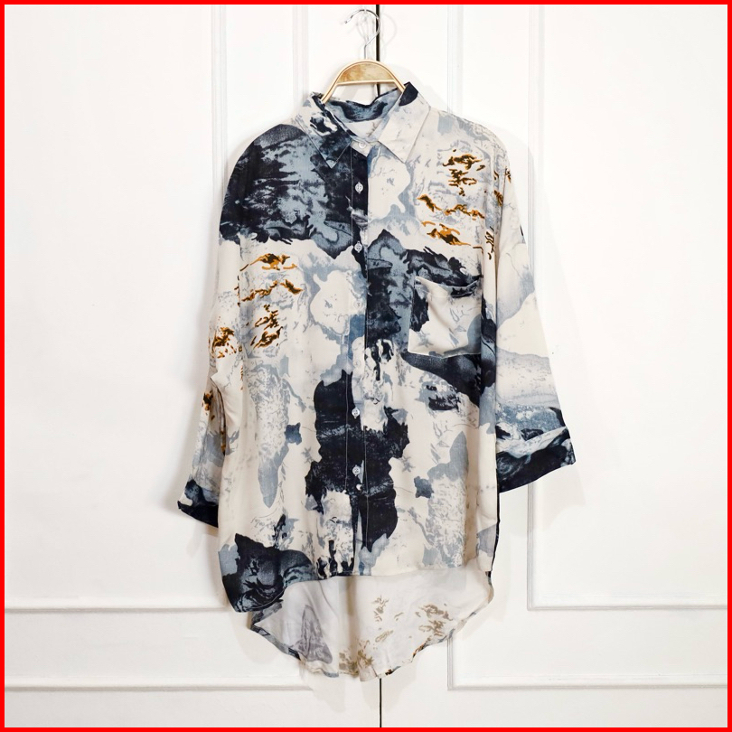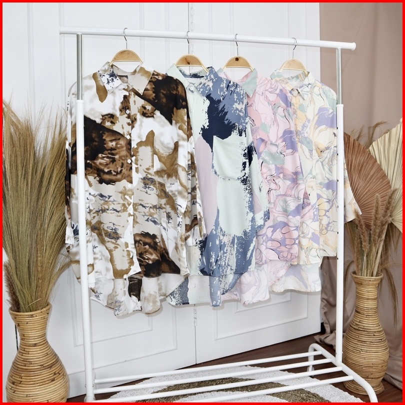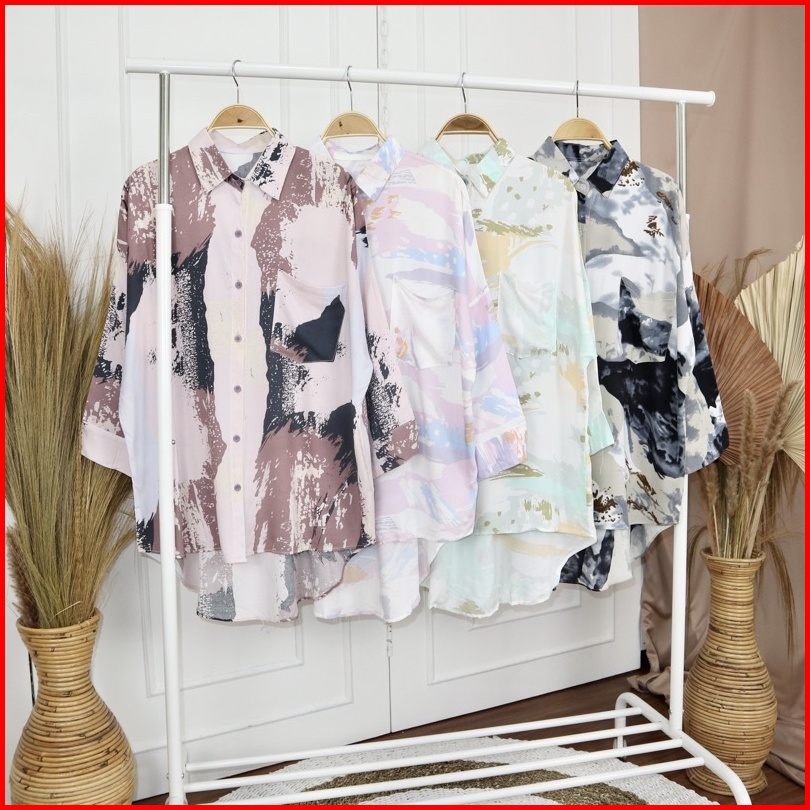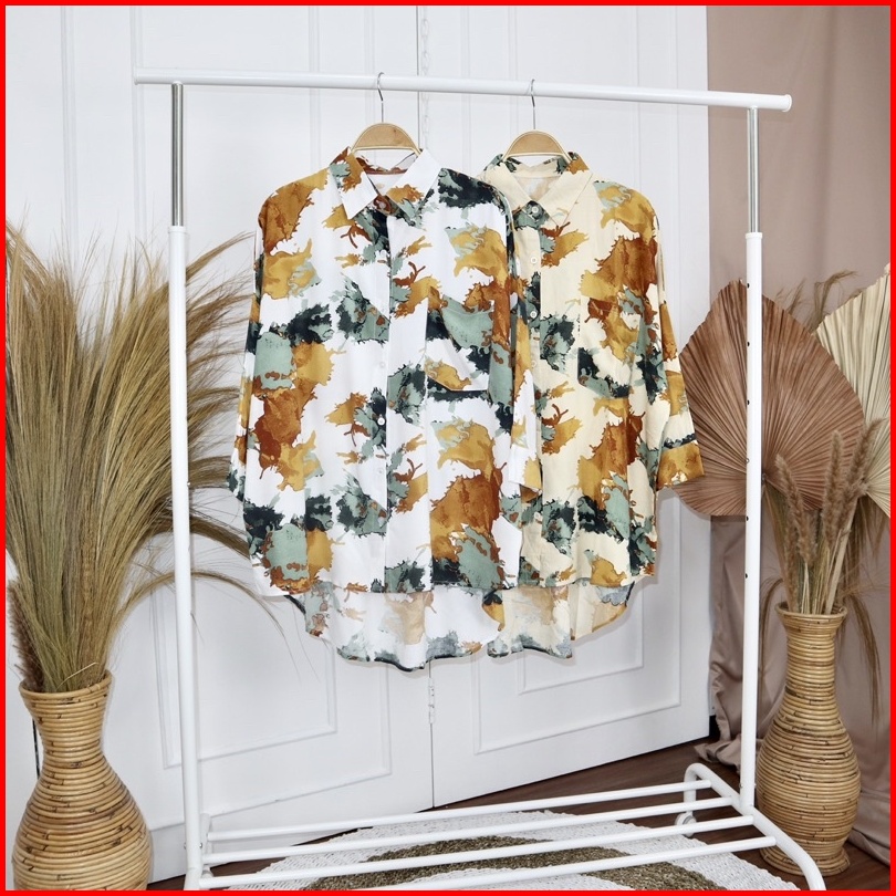 Kara.id Garvita Shirt Oversize Atasan Wanita - Kemeja Wanita Oversize Ld130cm - Kemeja Motif