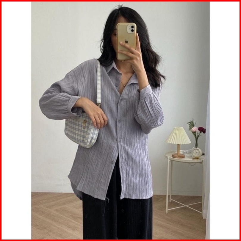 Mj Style - Kemeja Wanita Oversize - Basic Shirt Kemeja - Bahan Lady Crush.