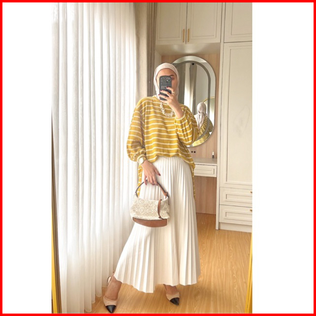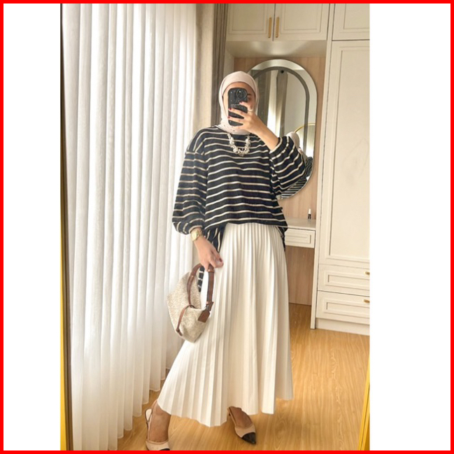 Misschics - Stripes Top Oversize Blouse Rajut Import