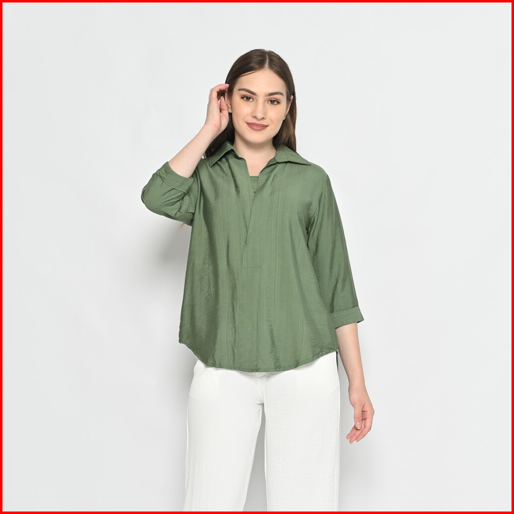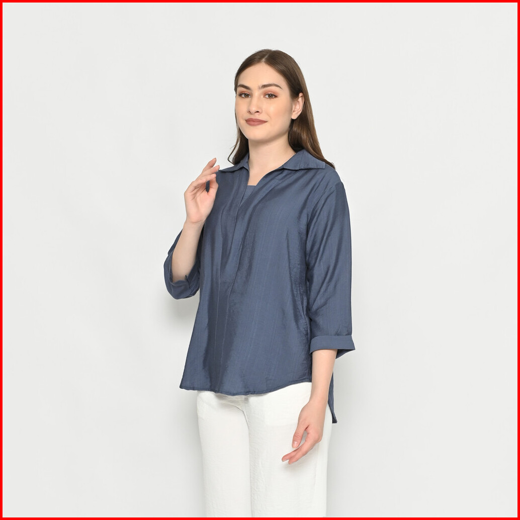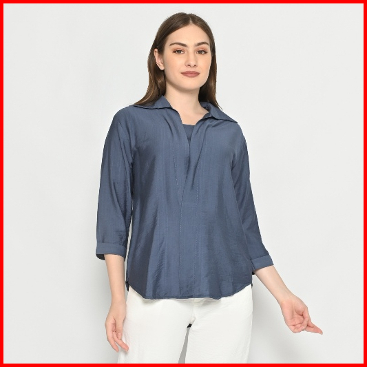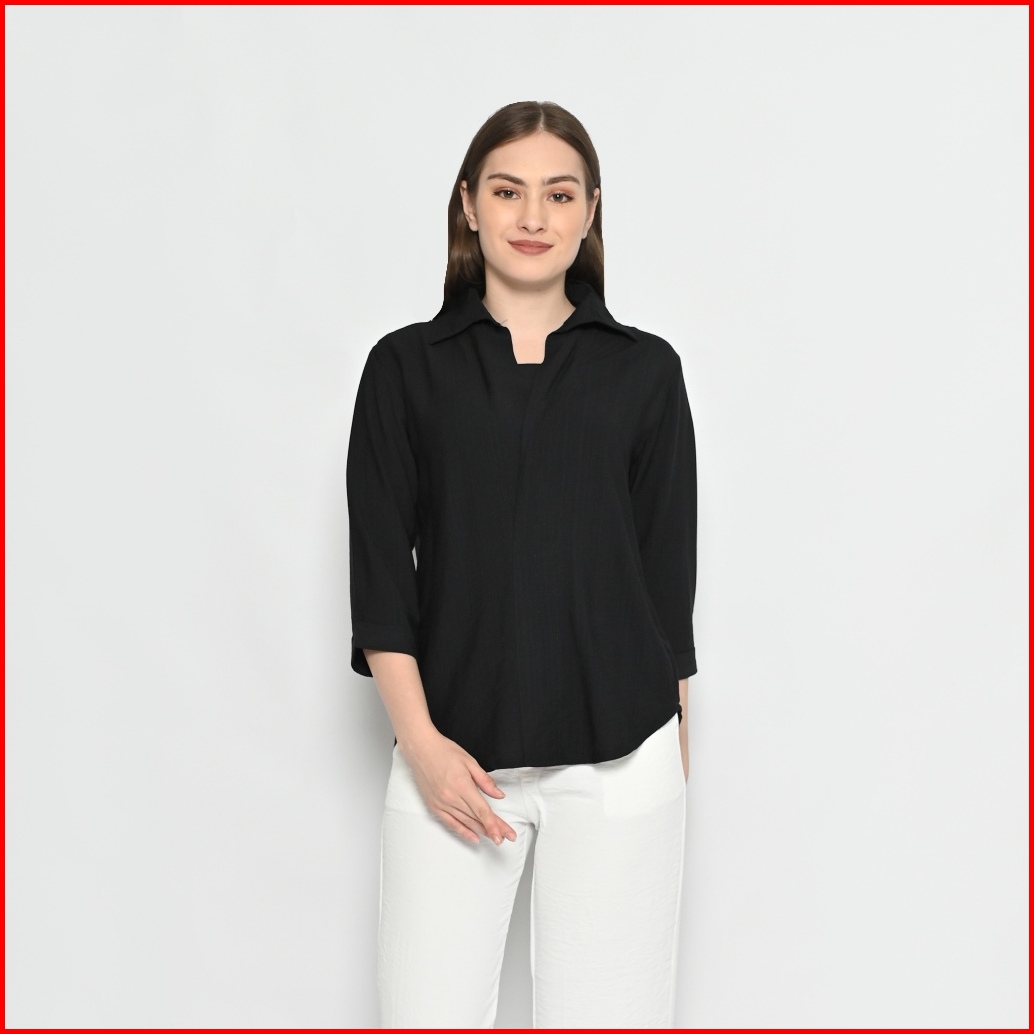 Queentin Blouse Casual Wanita 0190 Linen Polo Polos Lengan Panjang 3 4