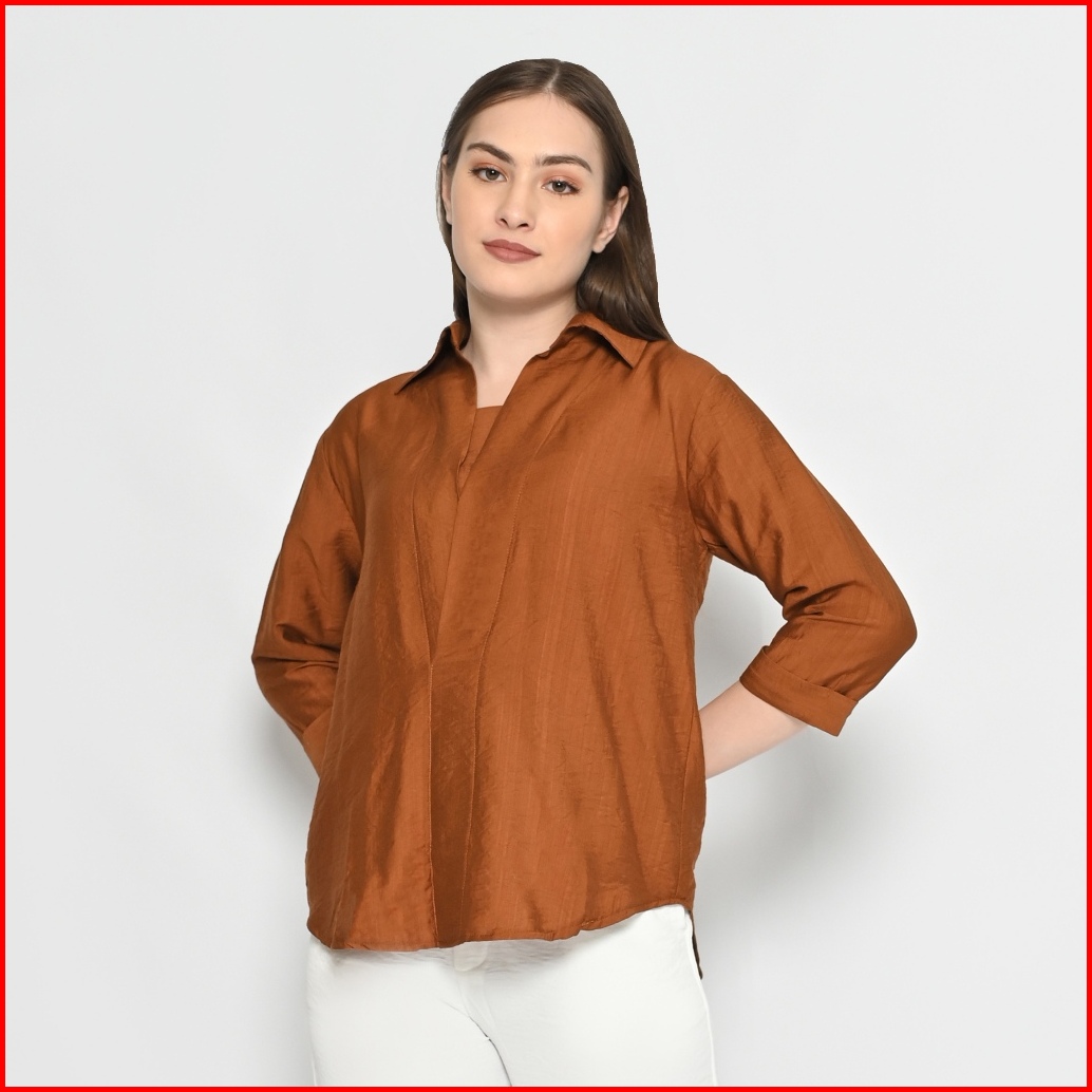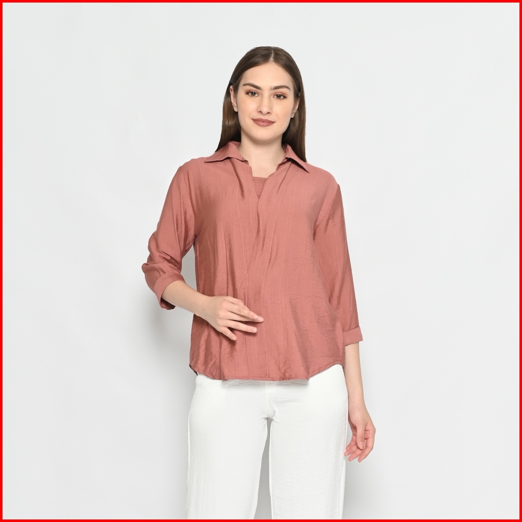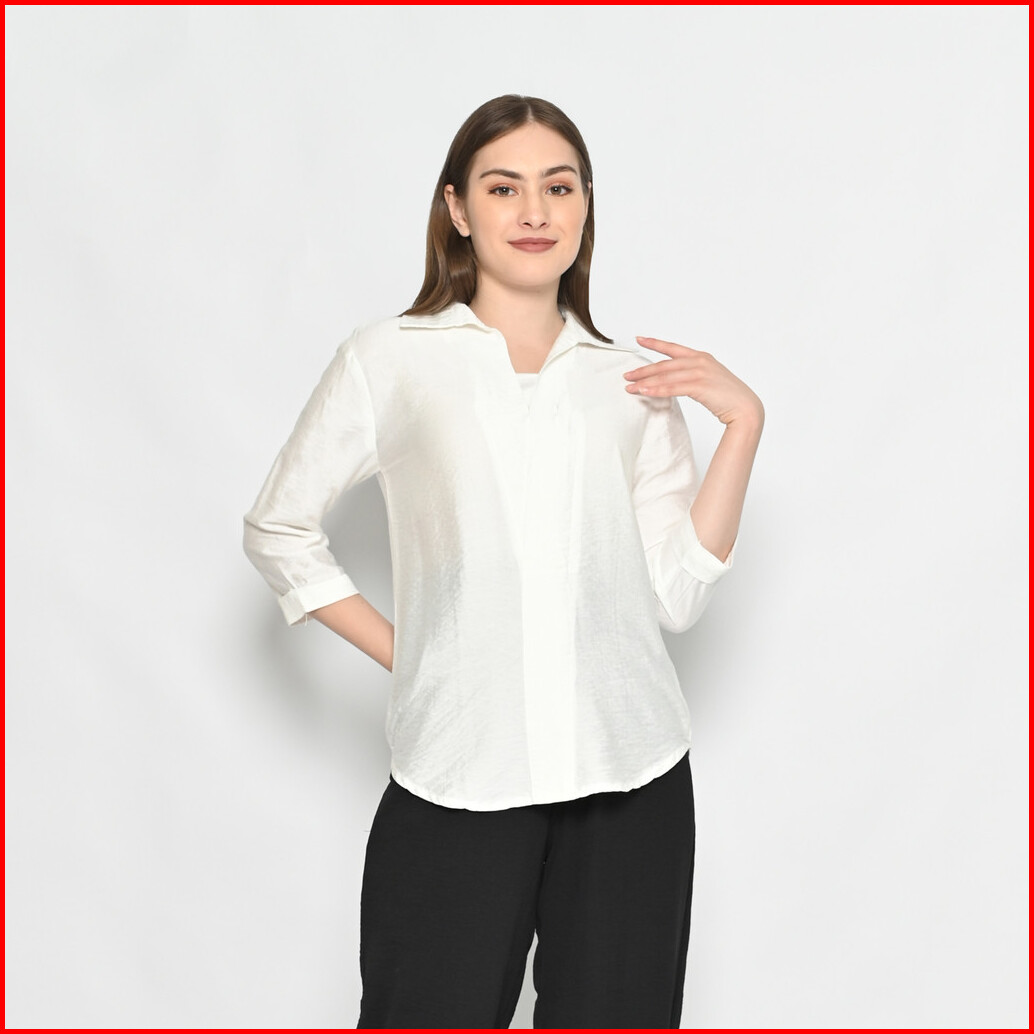 Queentin Blouse Casual Wanita 0190 Linen Polo Polos Lengan Panjang 3 4