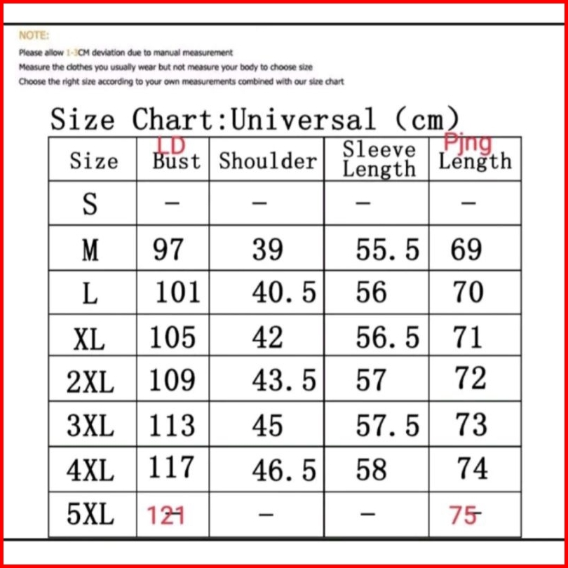M, L, XL, 2XL, 3XL, 4XL, 5XL