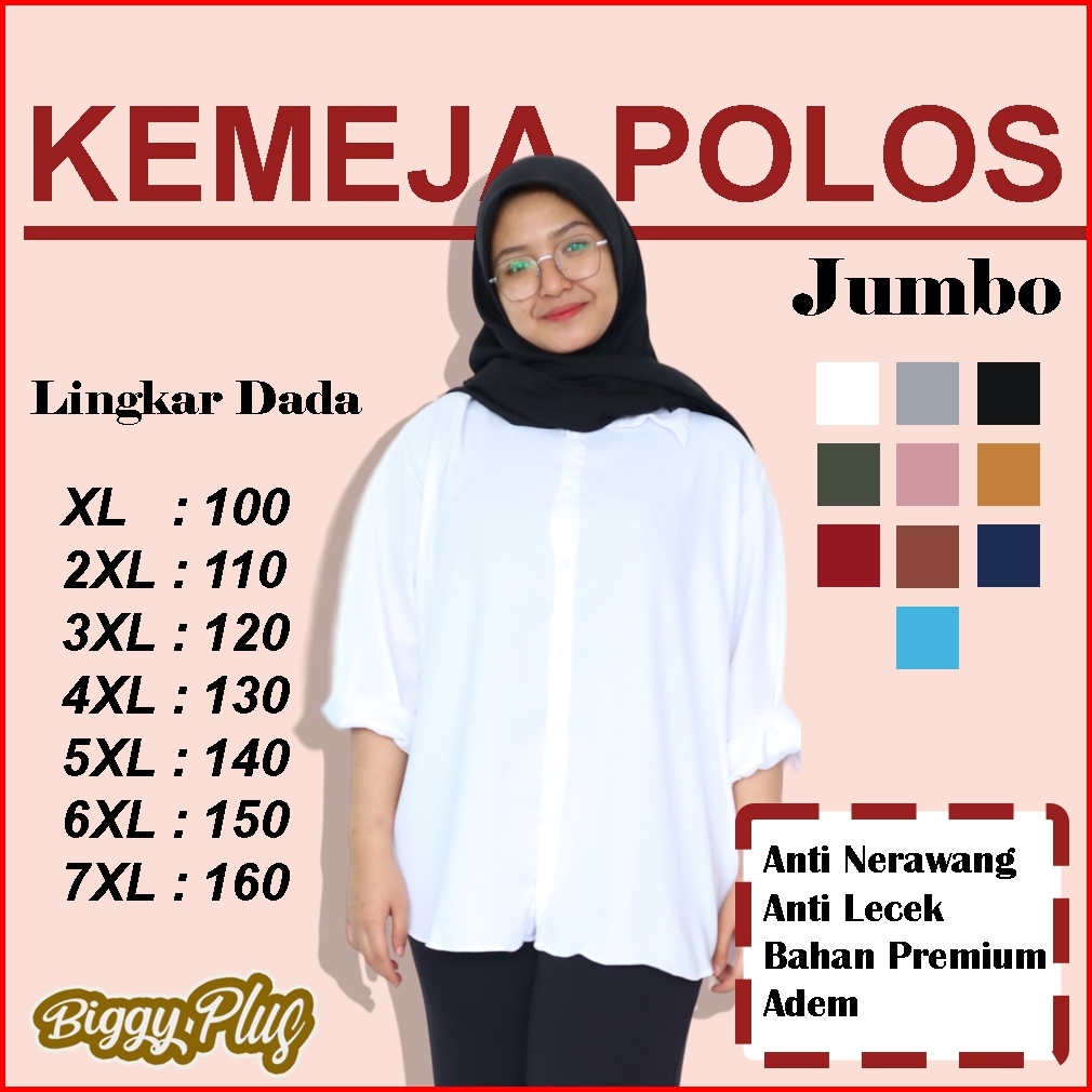 Bgp - Kemeja Polos Putih Wanita Jumbo Kemeja Kerja Bigsize Kemeja Polos Lengan Panjang Baju Atasan Wanita Big Size Atasa