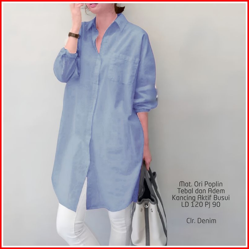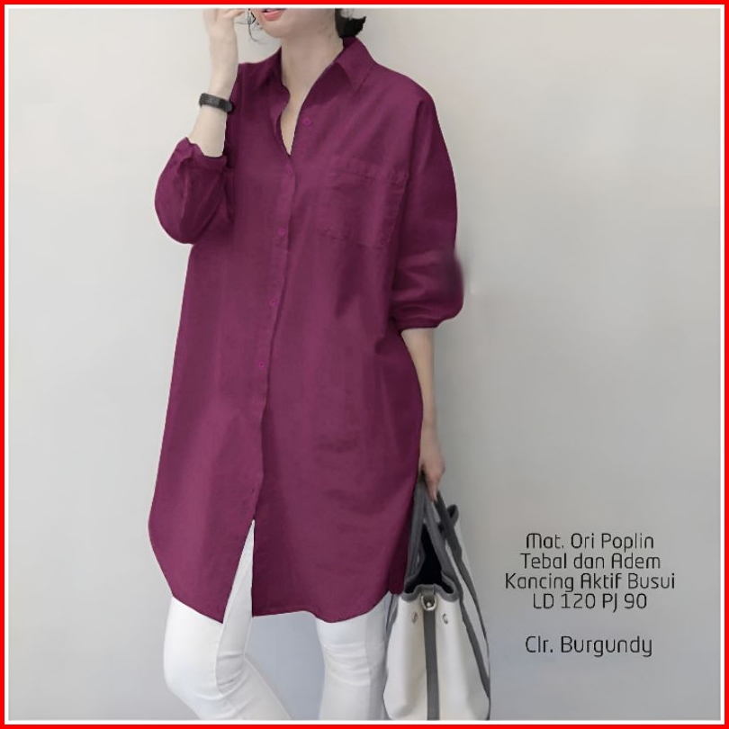 Busana Fashion Hq Wanita Atasan Basic Kemeja Viola Blouse Jumbo Poplin Ld 120 Lengan Panjang Blouse Kasual Kekinian Nyam