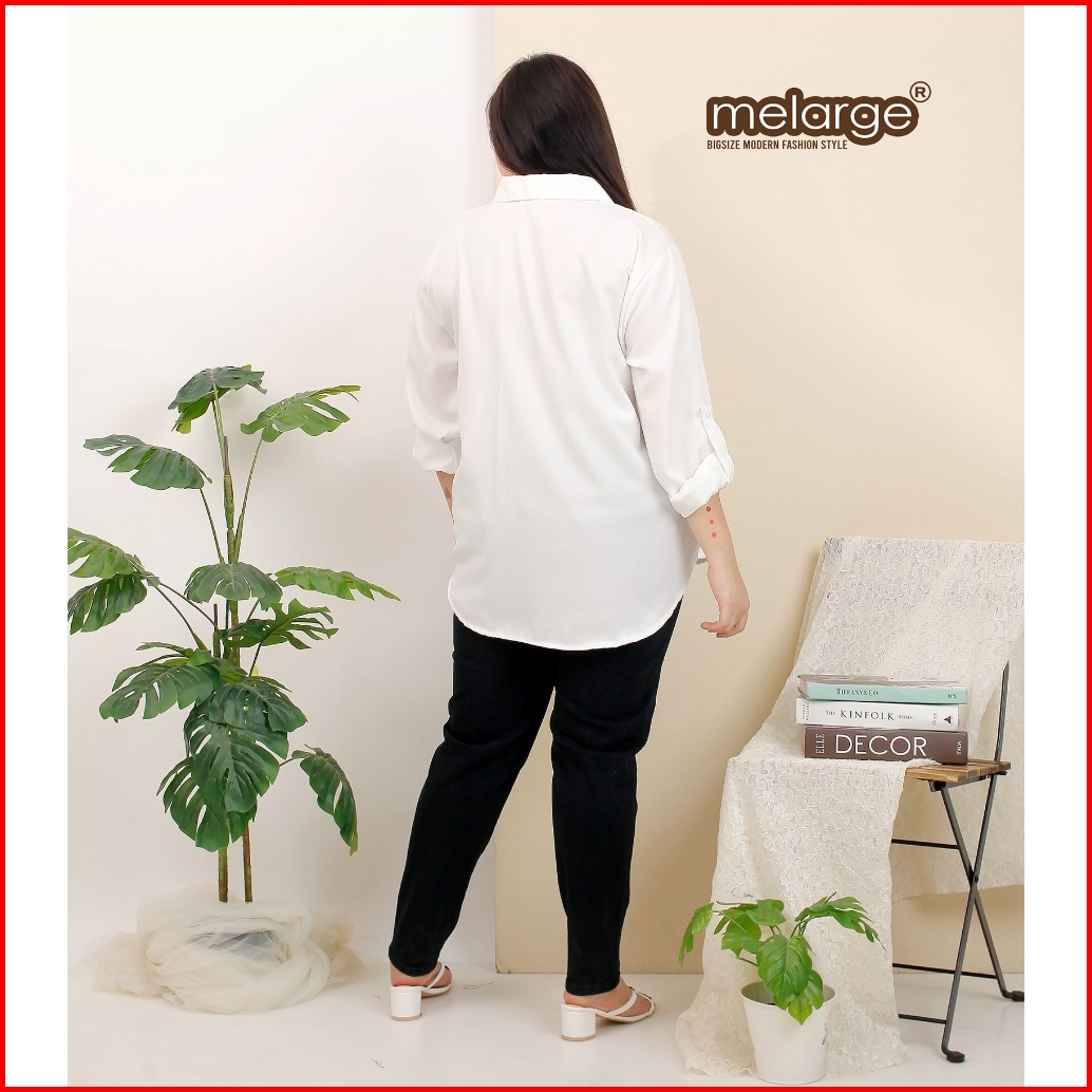 Melarge - Kemeja Polos Wanita Putih Jumbo Xl Ld 100 2xl Xxl 2l Ld 110 3xl 3l Xxxl Ld 120 4xl 4l Xxxxl Ld 130 Atasan Big