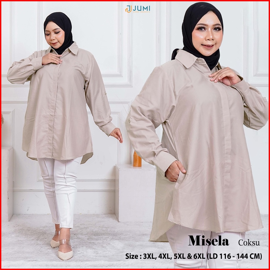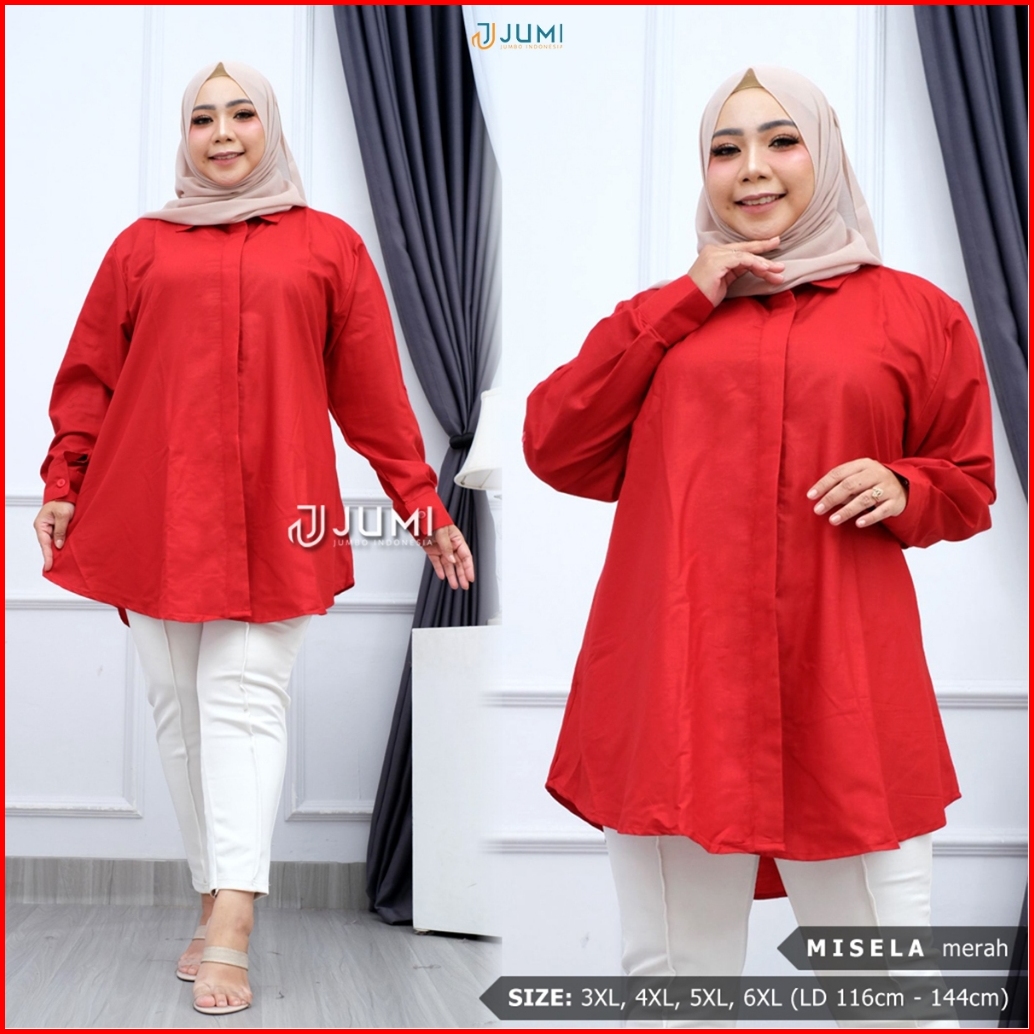 Jumbo Kemeja Kerja Wanita Premium Ld 116 - 144cm Katun Toyobo Hq Xxl - Xxxxxl Misela Kemeja Wanita Oversize Formal Casua