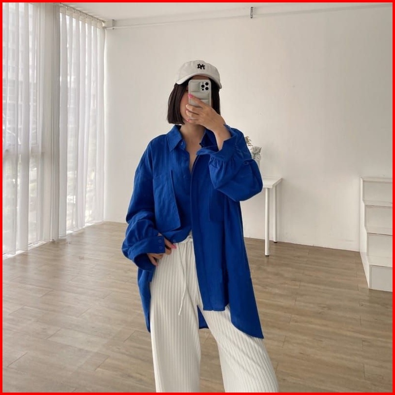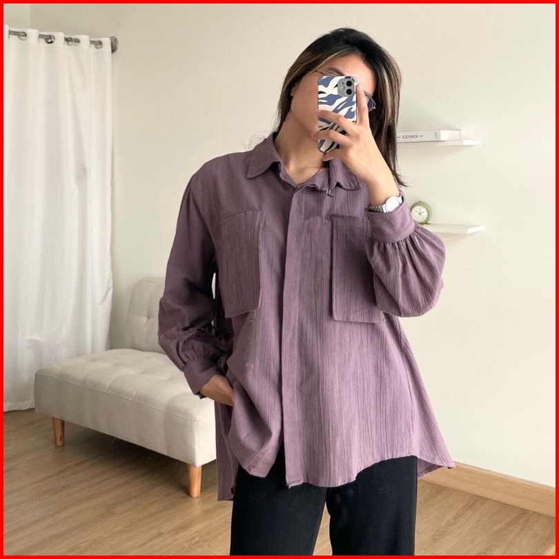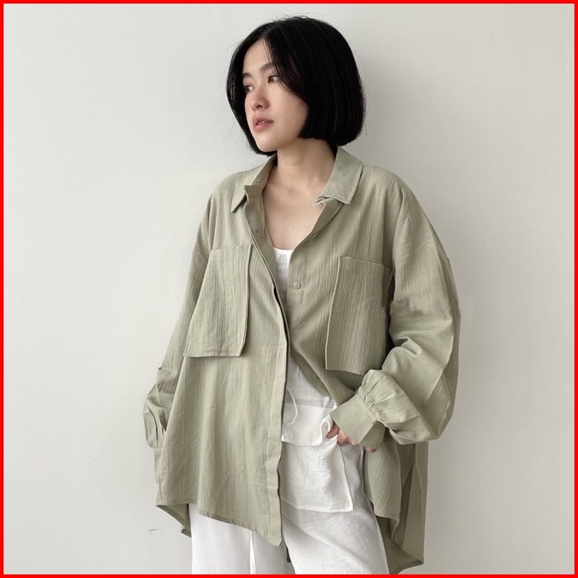 Kemeja Linen Oversize - Kemeja Linen Crinkle - Niki Shirt