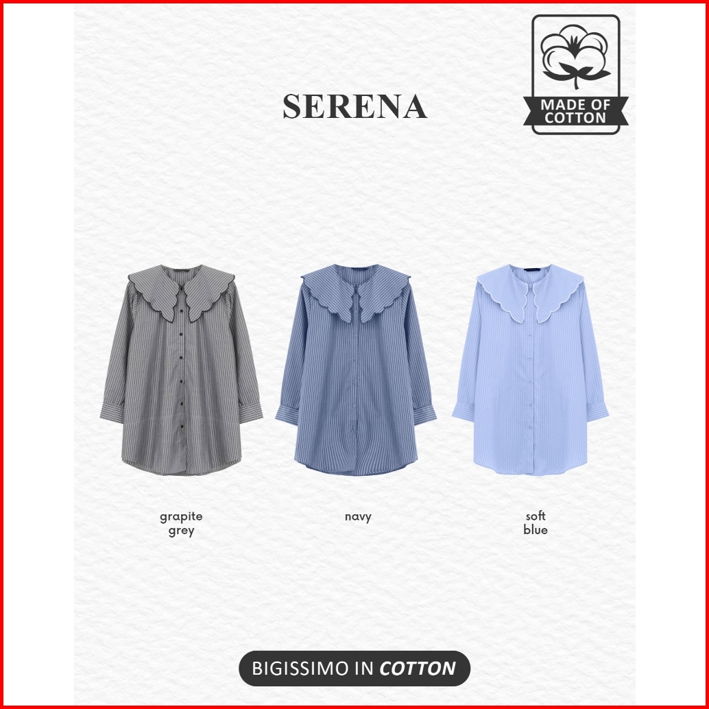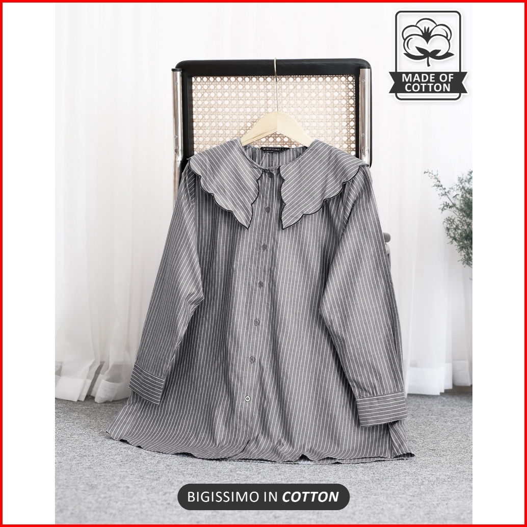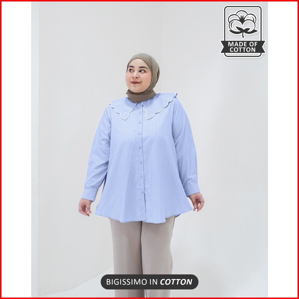 Bigissimo In Cotton - Serena Blouse Atasan Wanita Blouse Stripes Cotton Kemeja Big Size Jumbo Ld 130