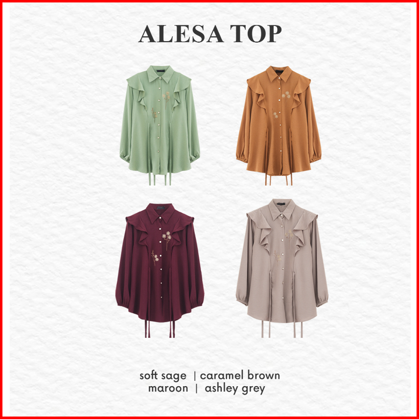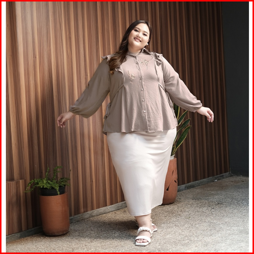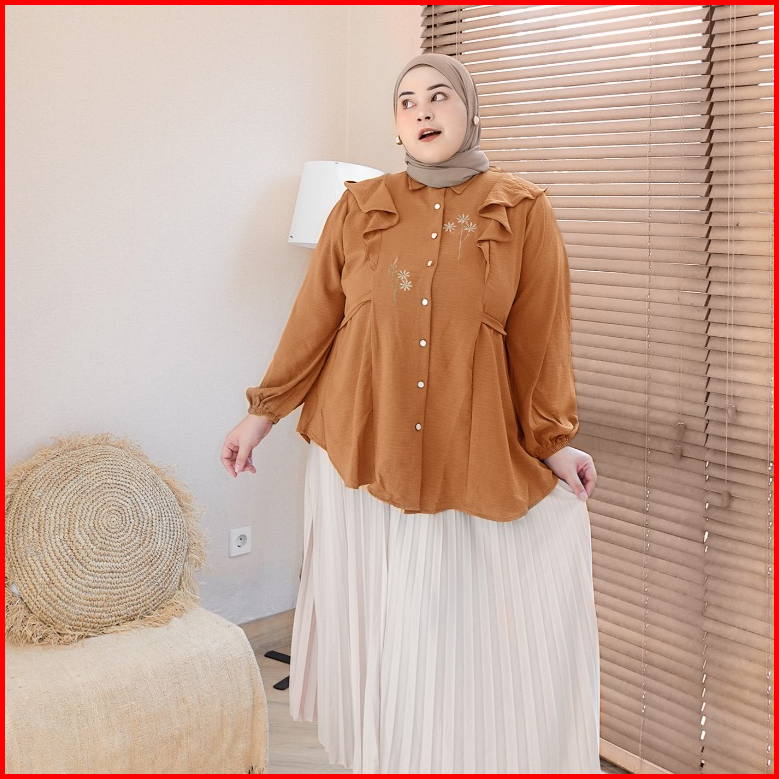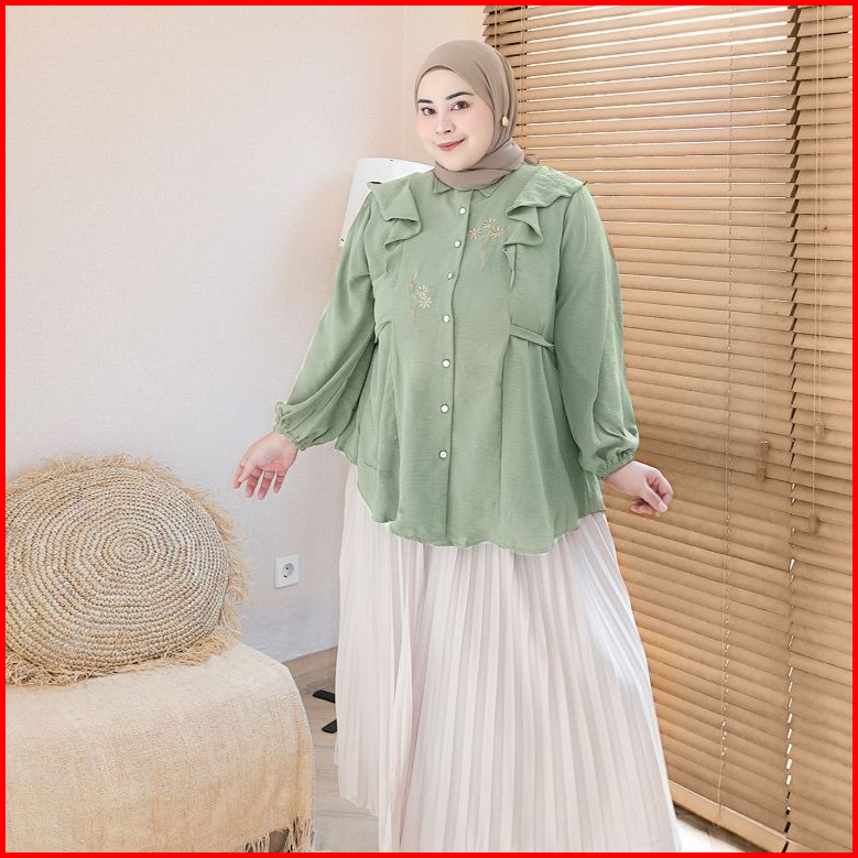 Bigissimo - Alesa Blouse Atasan Wanita Kemeja Bordir Blouse Big Size Jumbo Ld 130