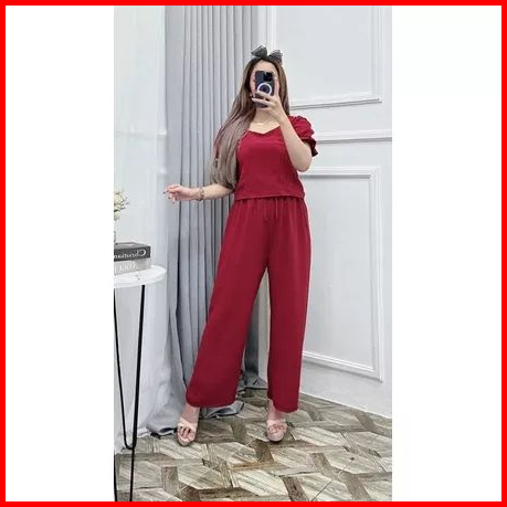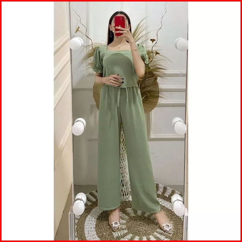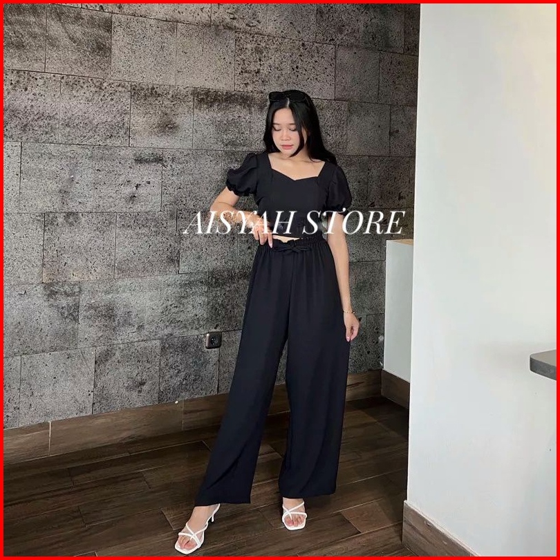 One Set Cringkle Wanita Setelan Clara Set Crop Top Wanita Kekinian Baju Setelan One Set Crinkle Wanita Polos Korean Styl
