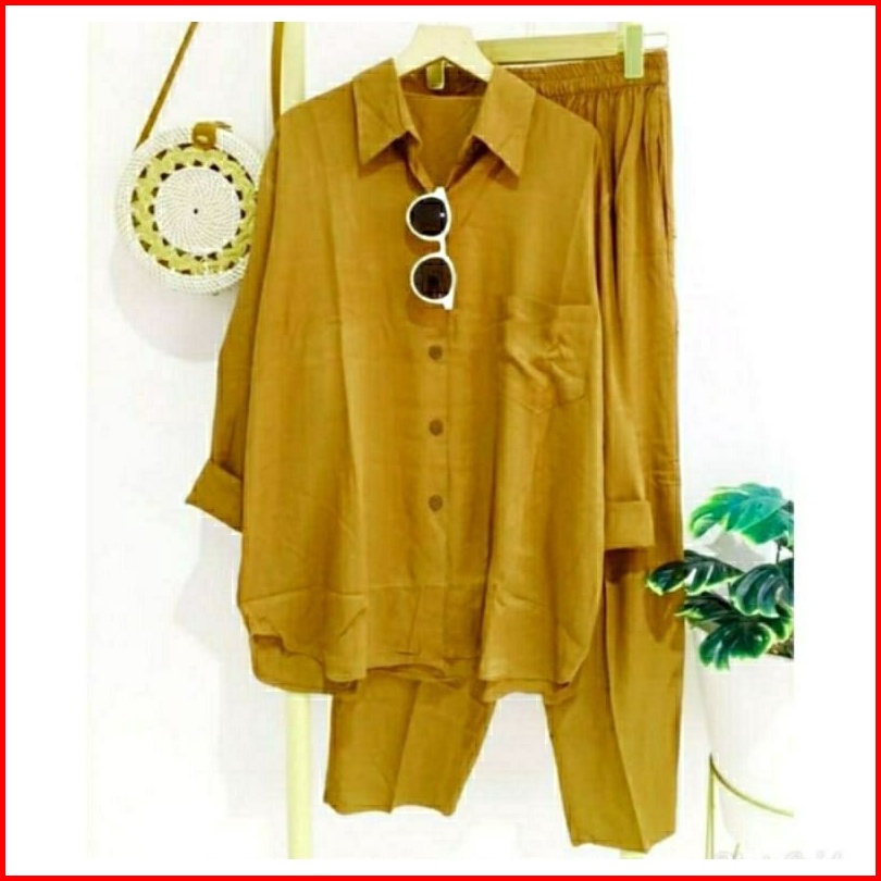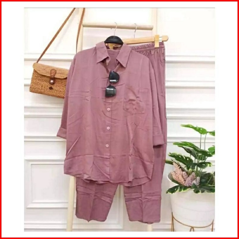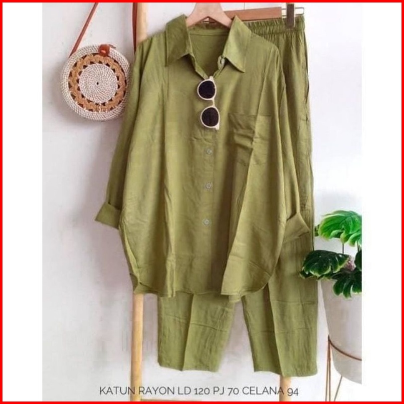 Setelan Wanita One Set Rayon Jumbo Premium Setcel Rayon Polos Lengan Panjang