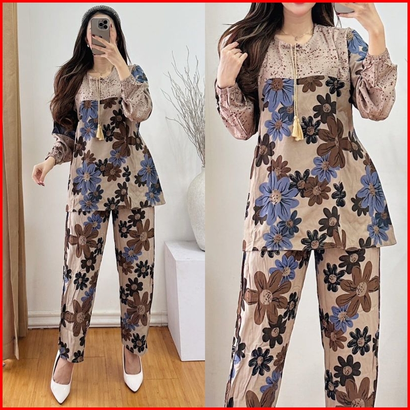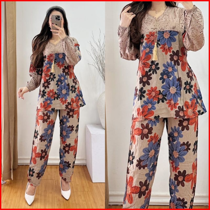 Setelan One Set Astika Bunga Dahlia Ld110 Busui Kekinian