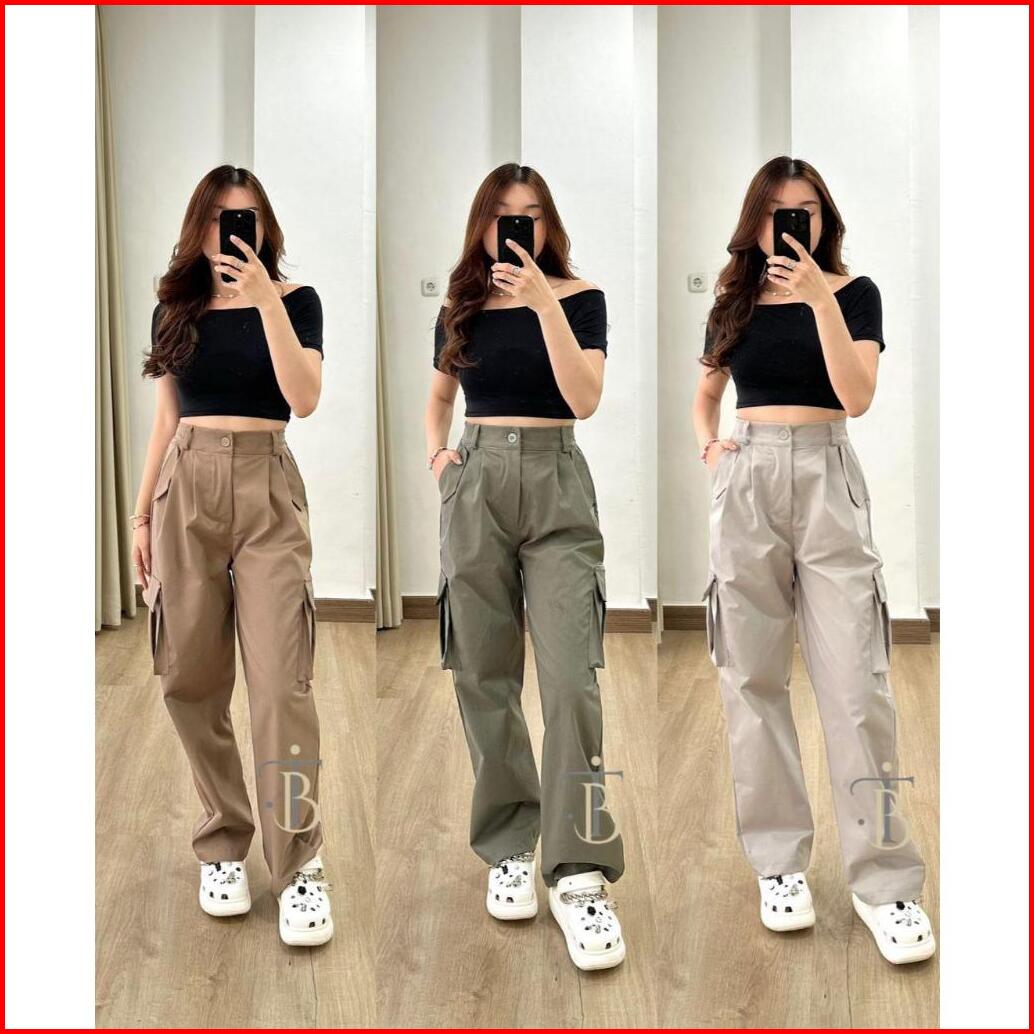 Yura Cargo Wanita Cargo Pant Pocket Celana Kargo Wanita Casual