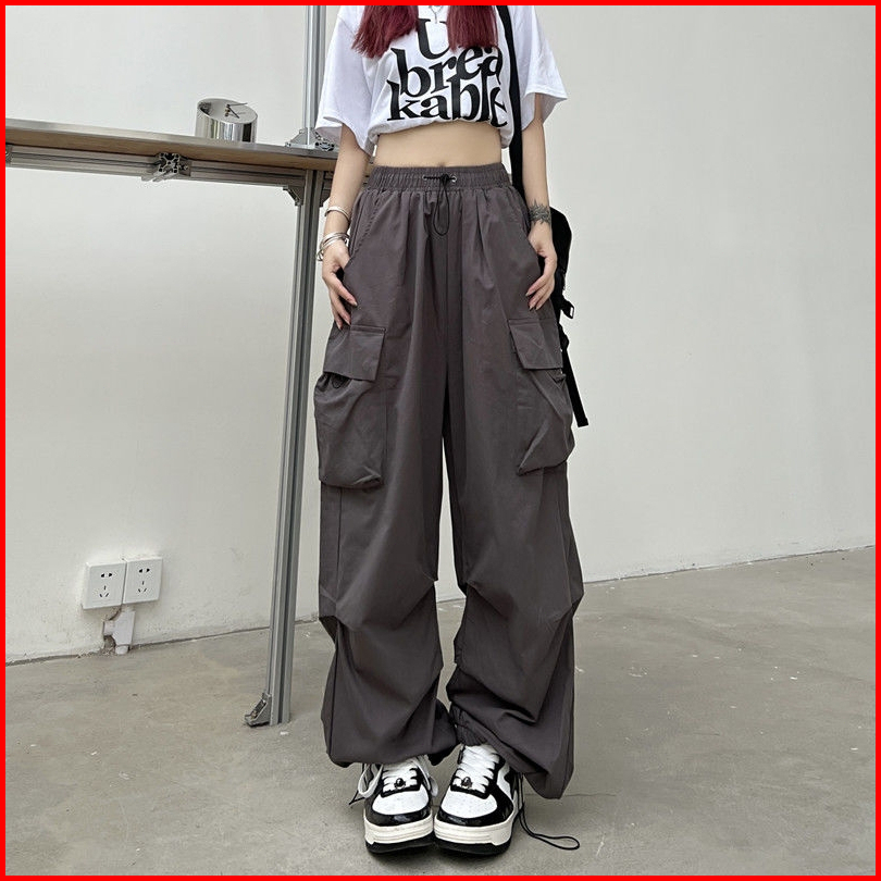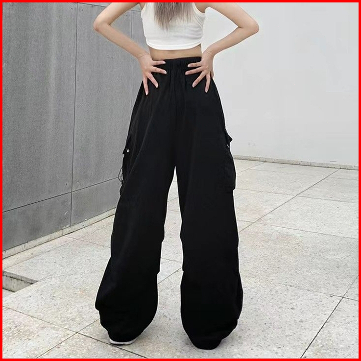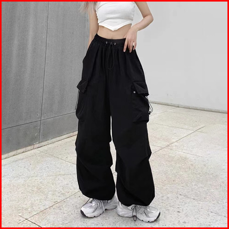 Gdtima Cargo Pants Wanita Loose Highwaist Celana Hitam Celana Panjang Celana Kargo Celana Kulot