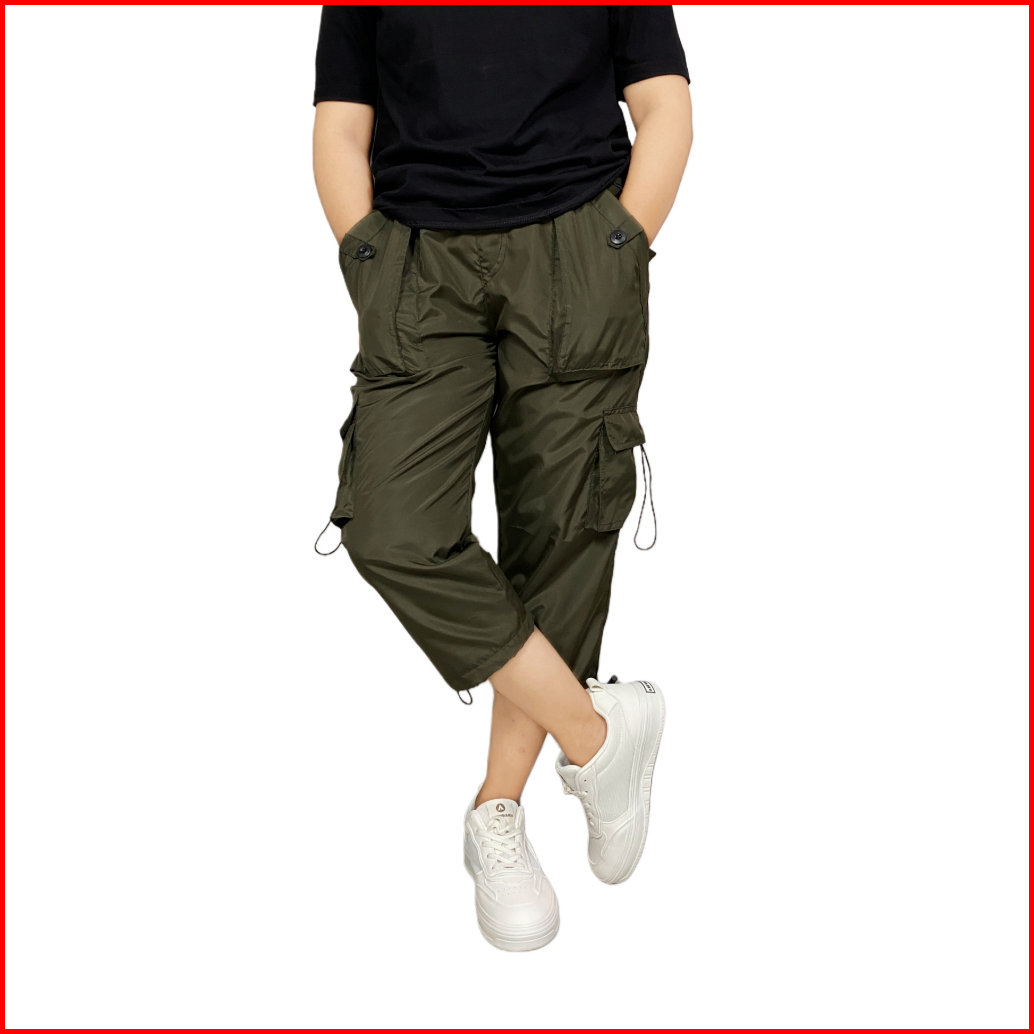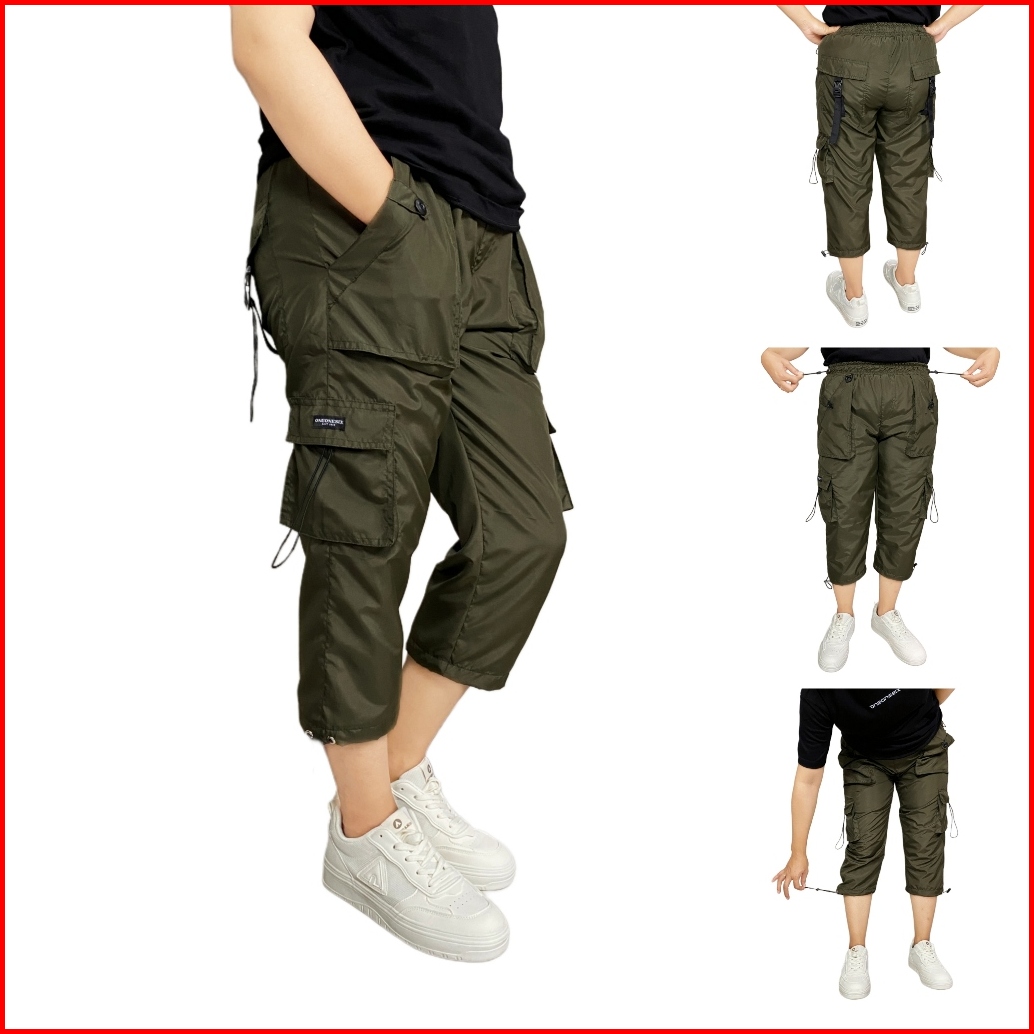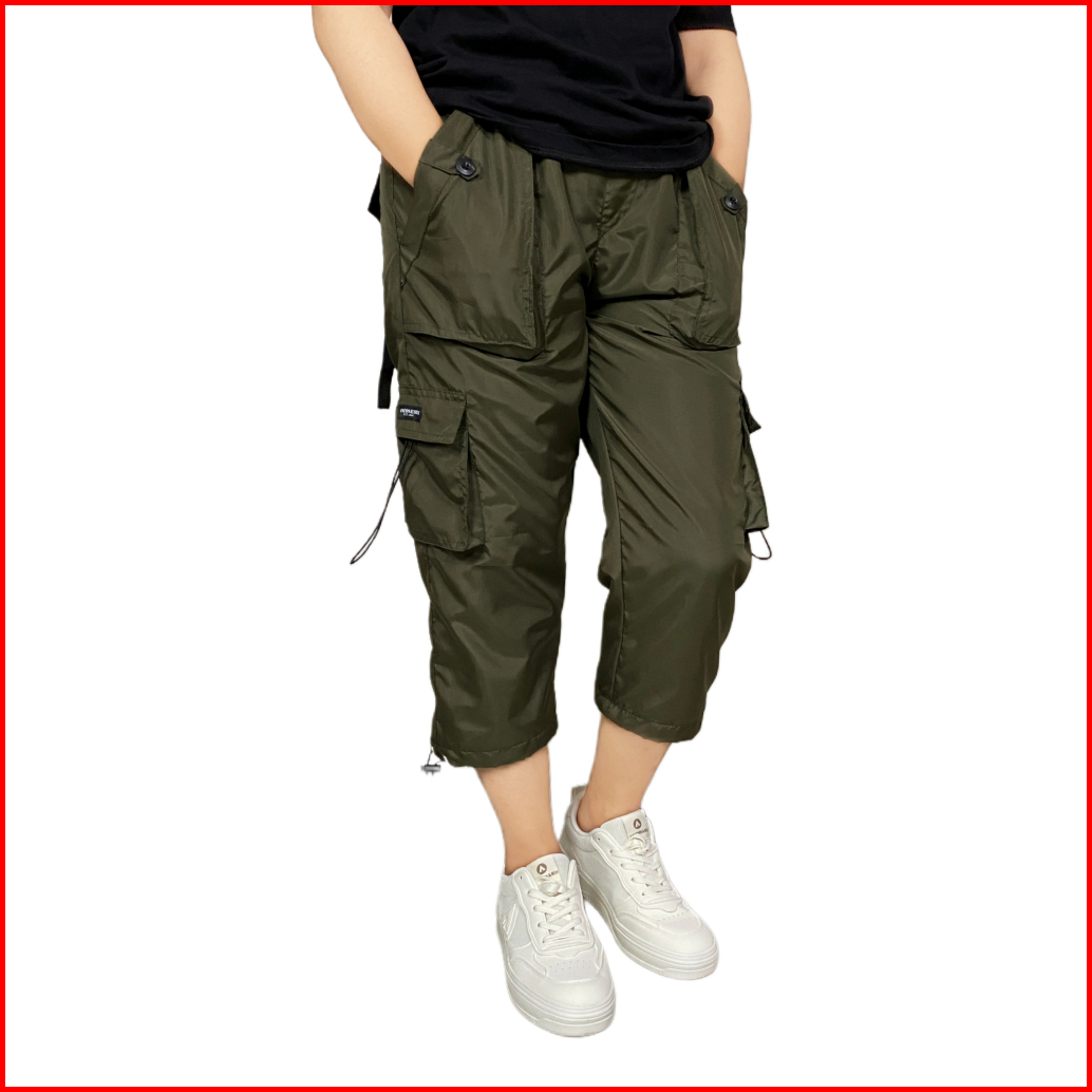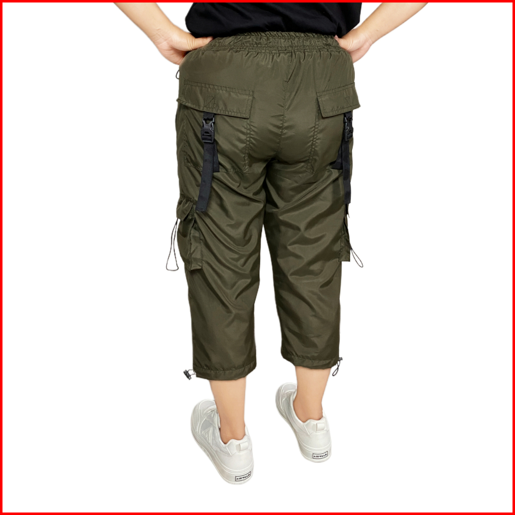 Oneonesix Celana Cargo Parasut Wanita 7 8 Hijau Army Olahraga Jogging Casual Sport