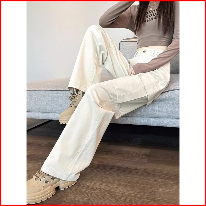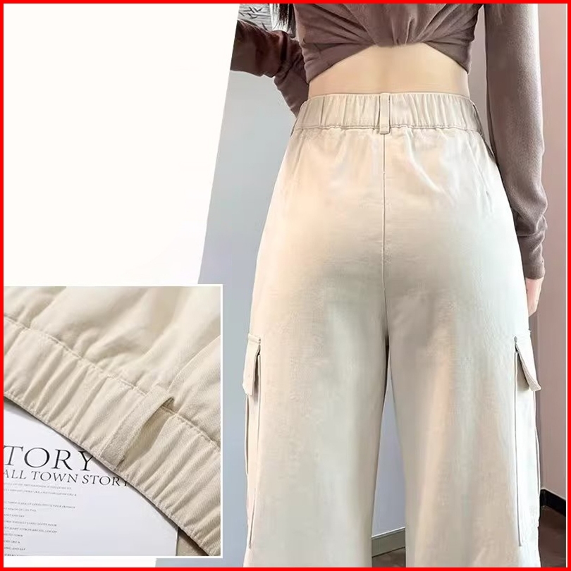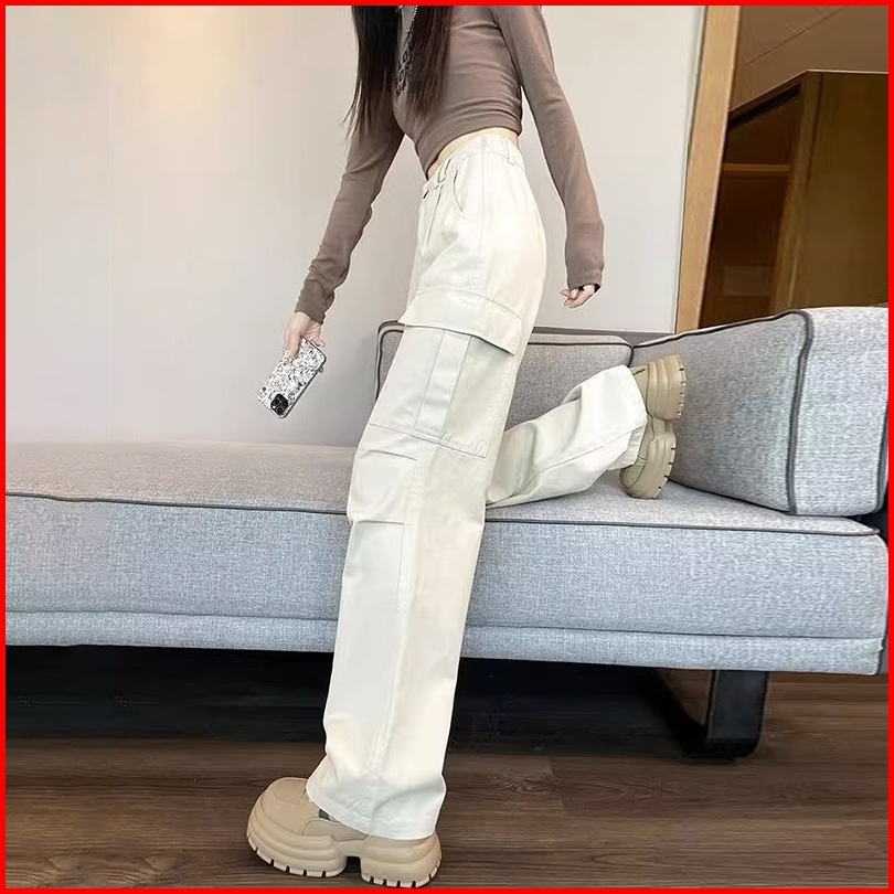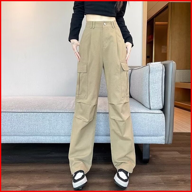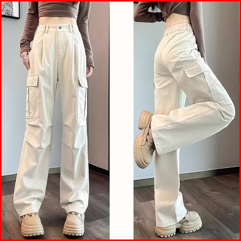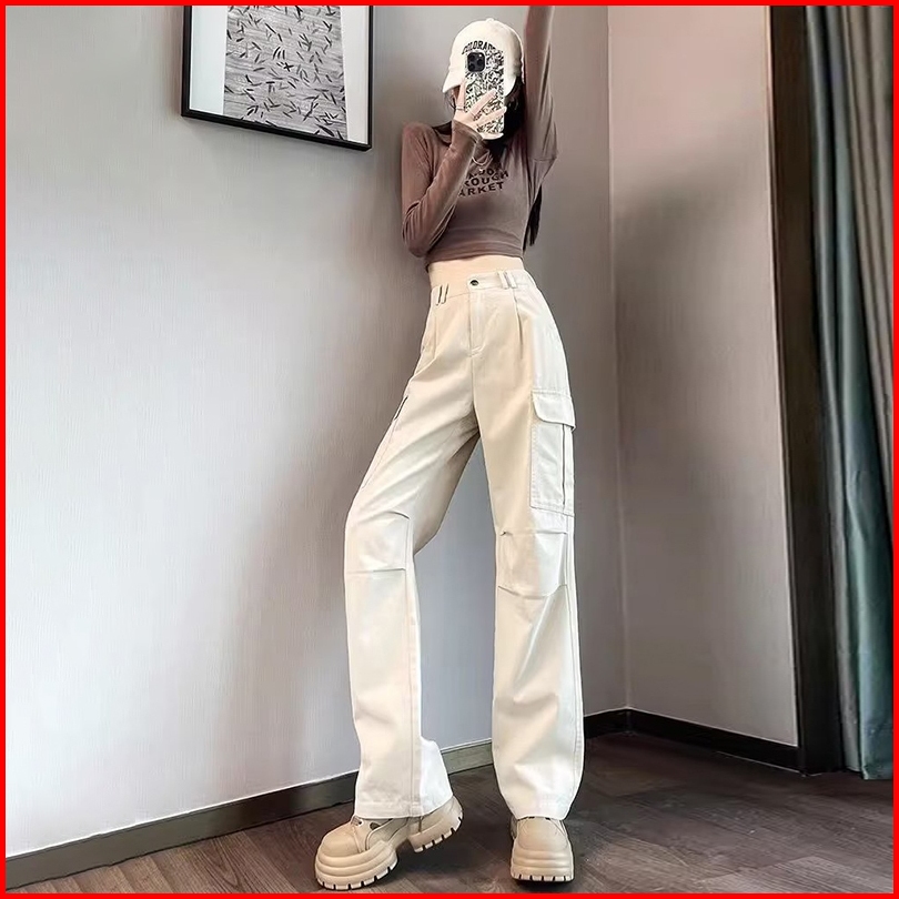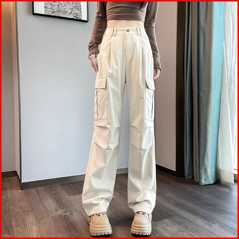 Celana Kasual Lurus Longgar Baru Celana Kargo Korean Style Katun Twill