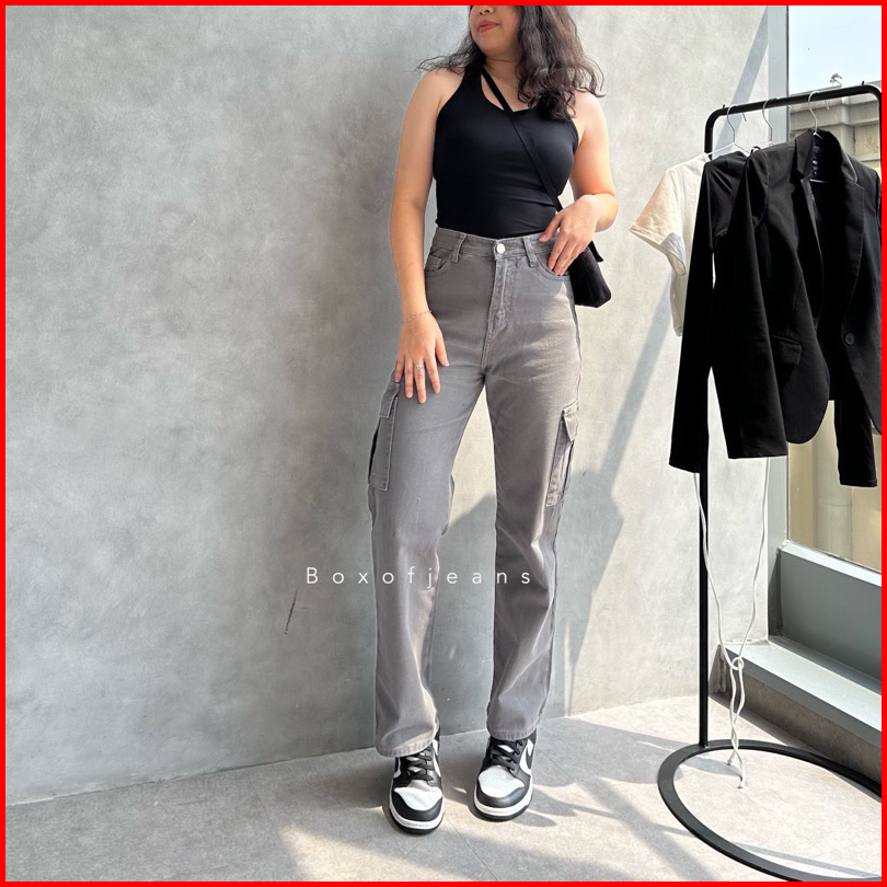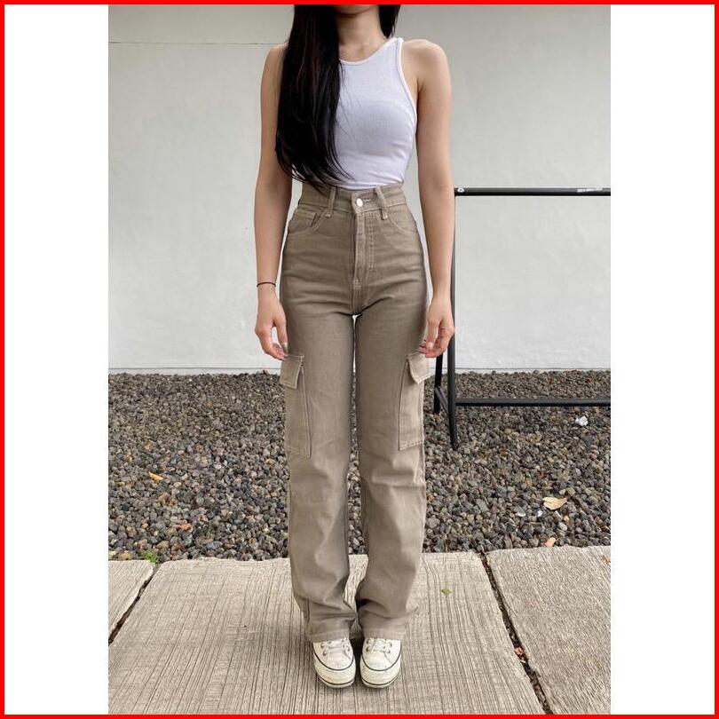Celana Cargo Jeans Hight Waist Celana Jeans Cargo