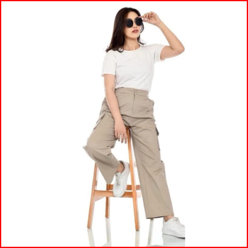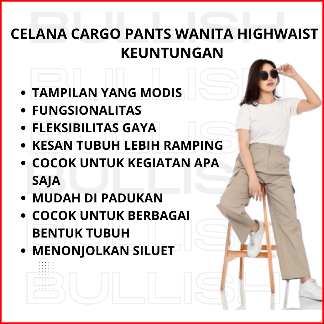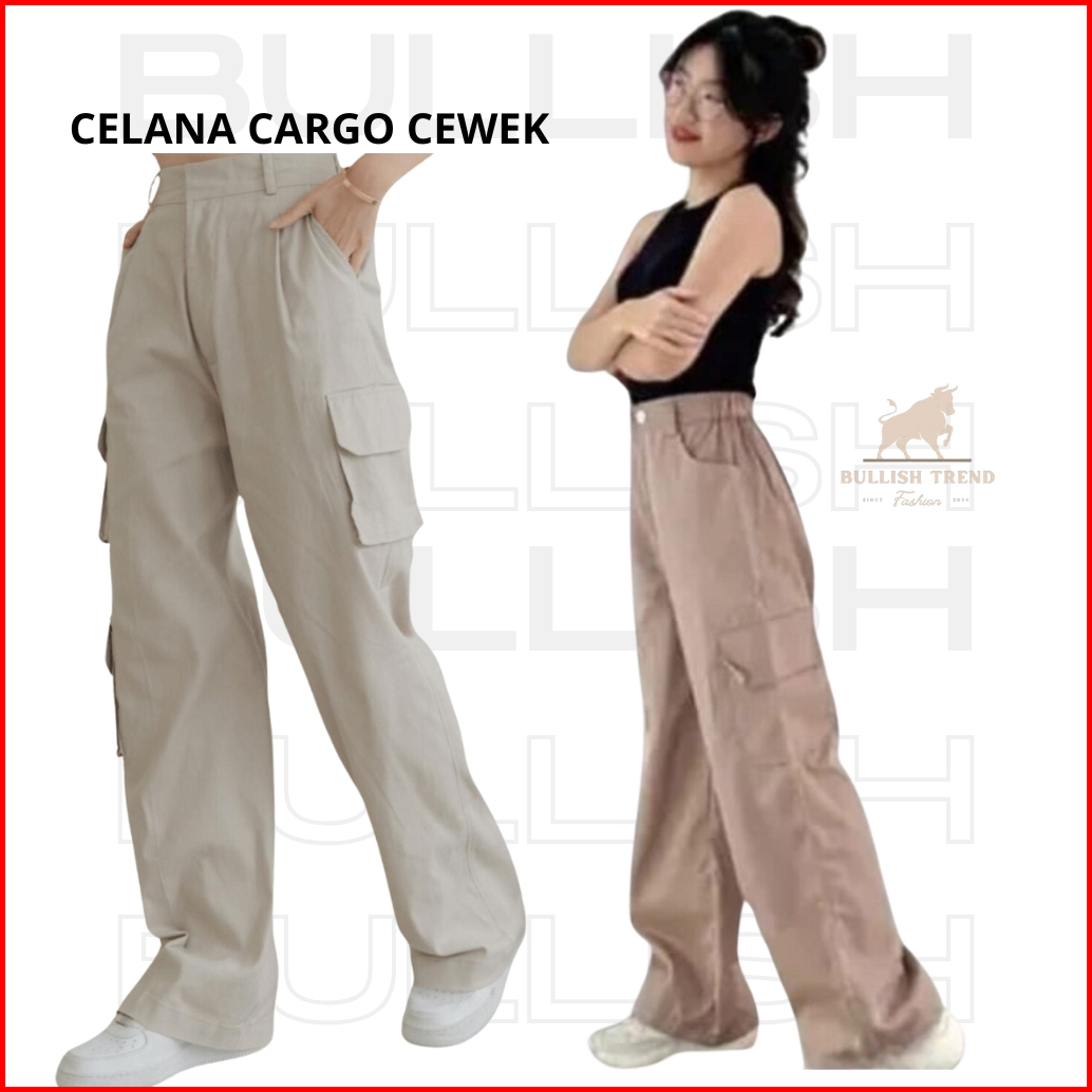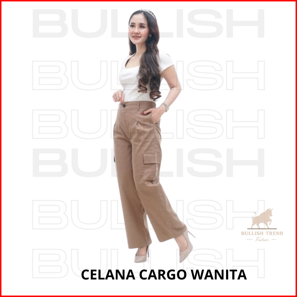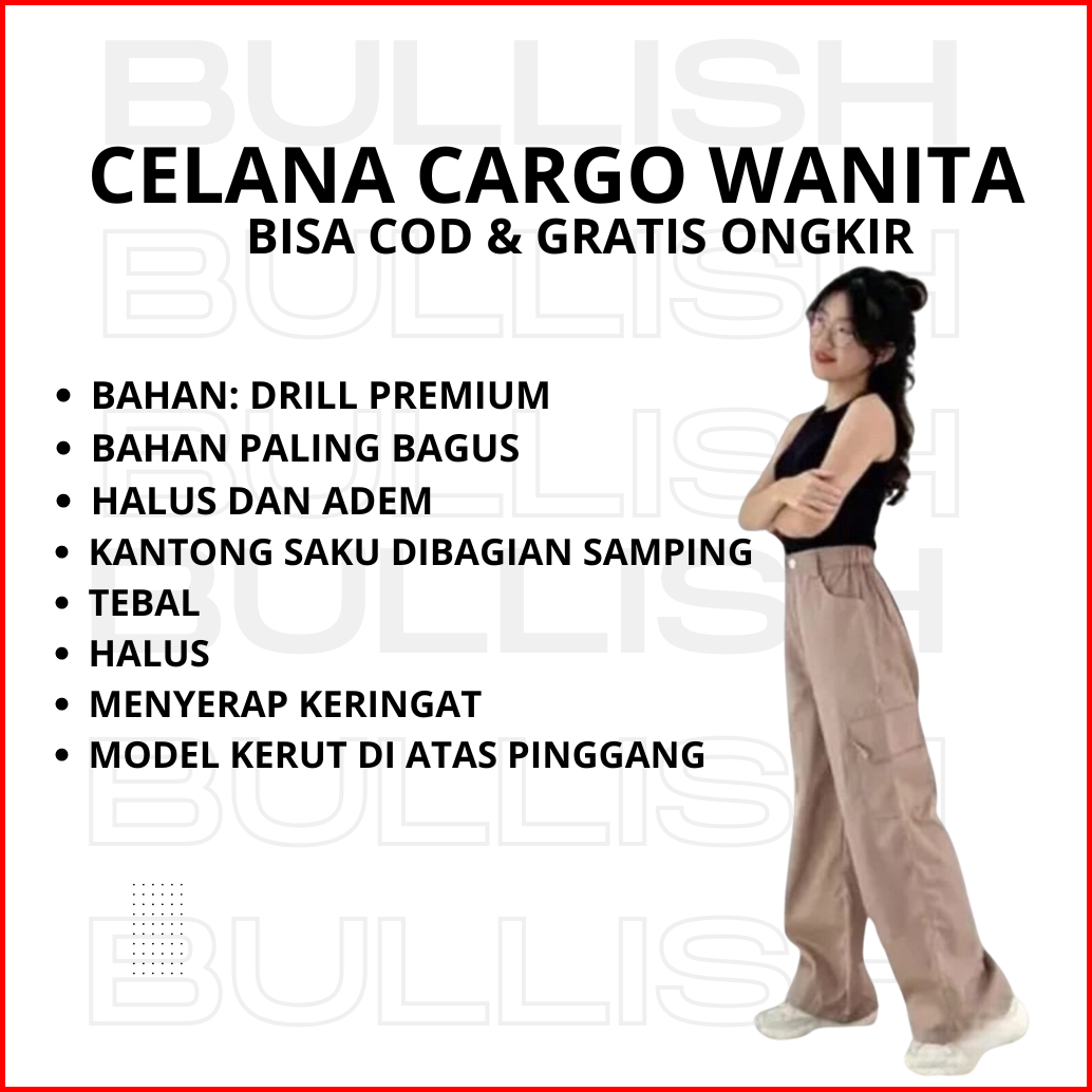 Bullish - Celana Panjang Cargo Pants Wanita Highwaist Bahan Drill Premium Non Streach
