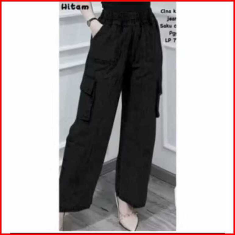 Celana Cargo Highwaist Loose Jeans Baggy Wanita Kulot Cargo Highwaist