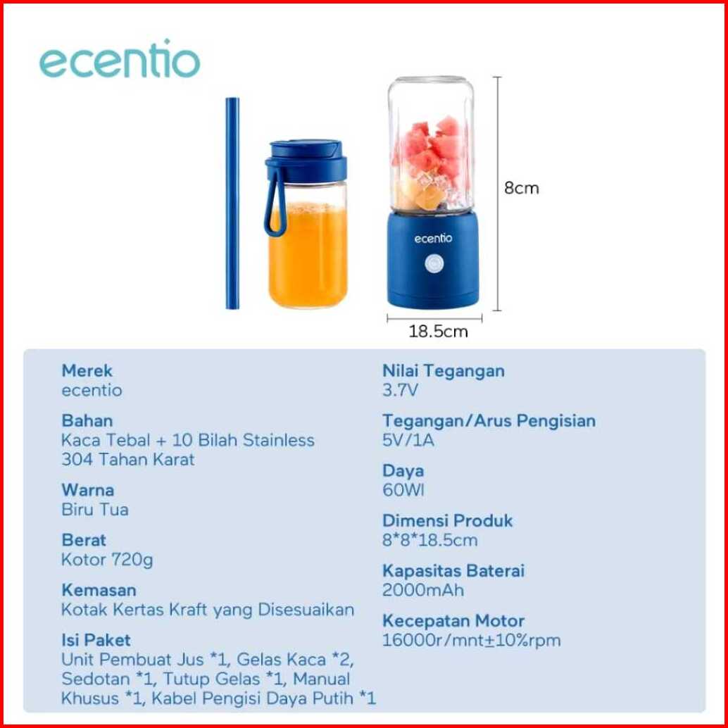 Ecentio Blender Mini Portable 380ml 380ml Juice Kaca Blender 10 Pisau Juicer Usb Pembuat Jus Elektrik 2000mah Rechargeab