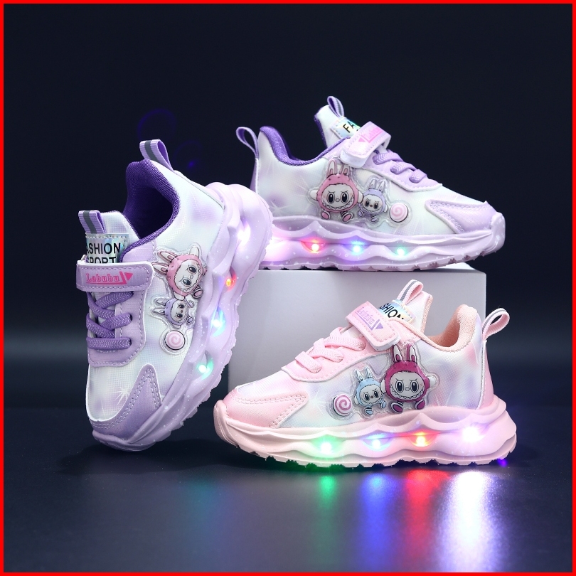Babyfit Size 21-30 Laboehboe Sepatu Anak Perempuan Lampu Led Sneakers Kartun Karakter Sepatu Import Qt-0904r