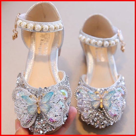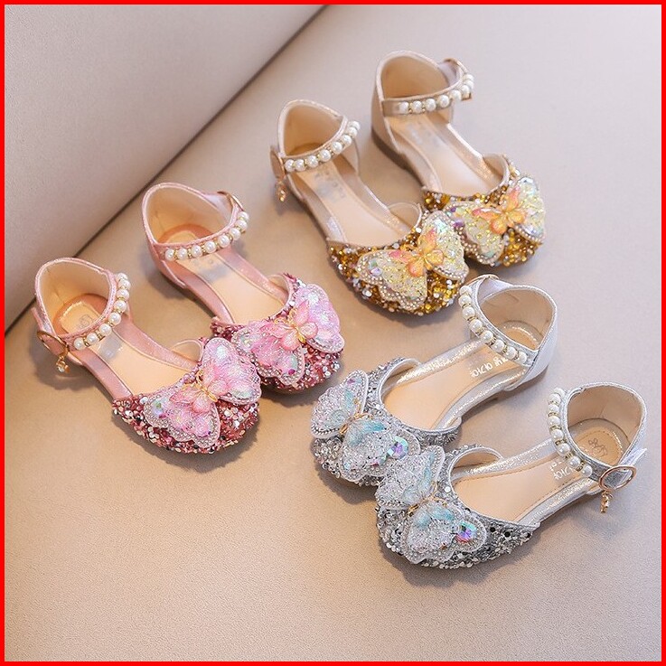 Size 26-36 Sepatu Pesta Anak Perempuan Natal Party Shoes Glitter Pita Bling Bling