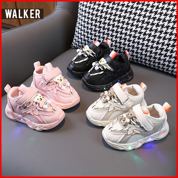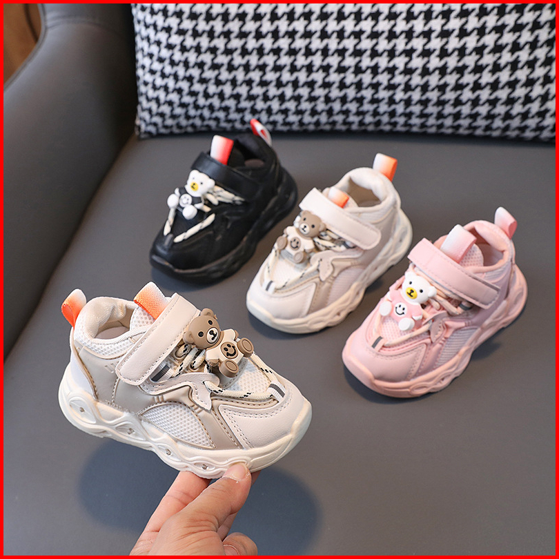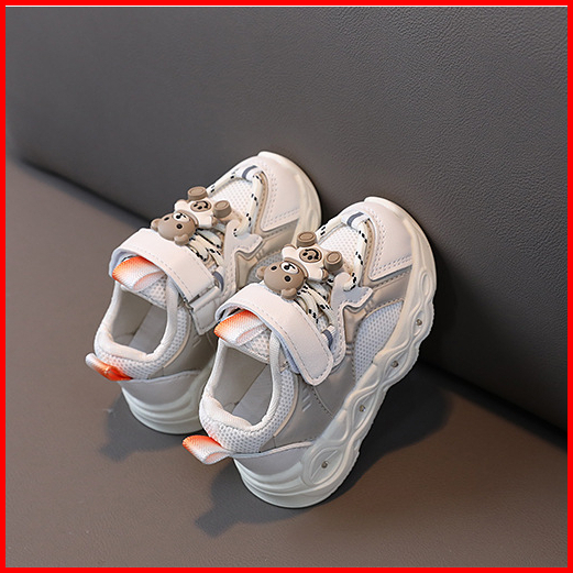 Lkm405 Sepatu Sport Anak Laki-laki Casual Bayi Motif Bear Dengan Lampu Led Sekolah 1kg 4pc Little Kuma