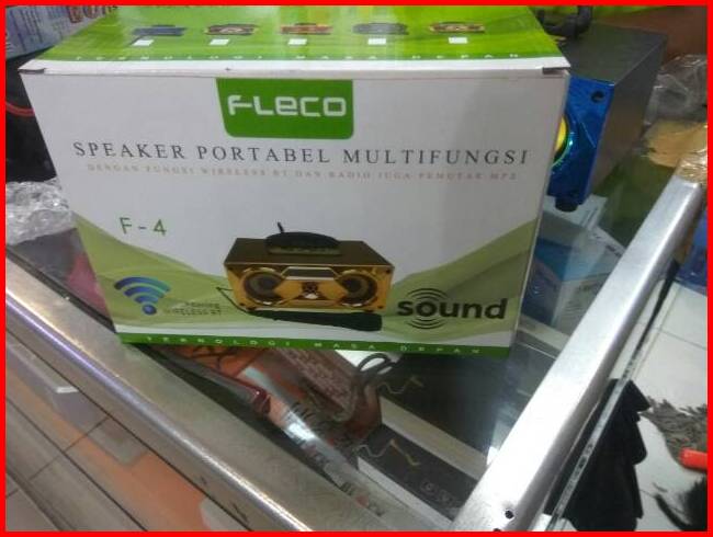 Speaker Bluetooth Free Mic Fleco F4 Bt Radio Fm Salon Aktif Portable Super Bass Usb Mp3 Motif Kayu