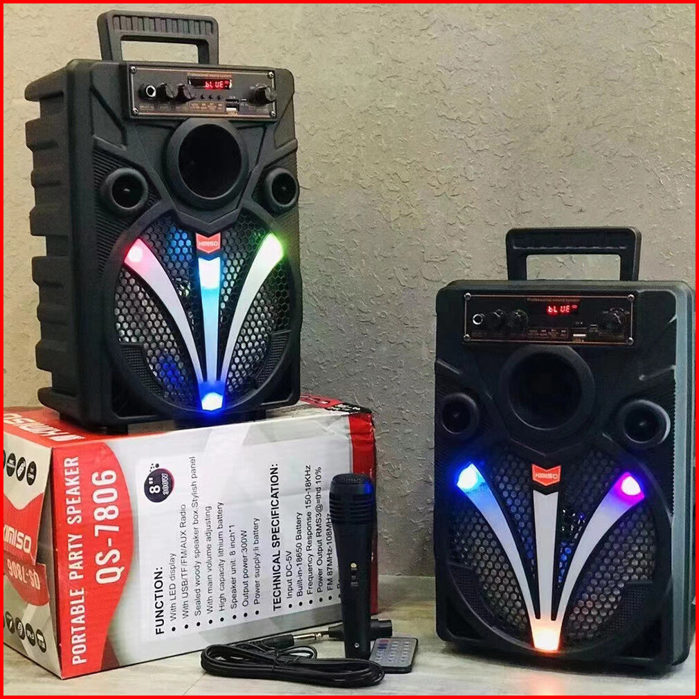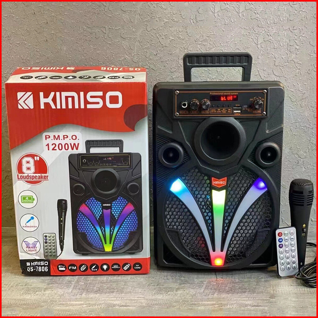 Speaker Bluetooth Portable Karaoke Kimiso Qs-7806 8 5 Inch With Mic Karaoke Black Led