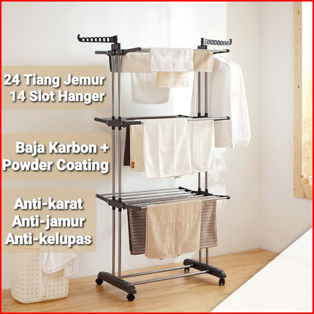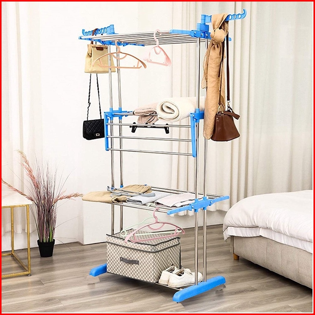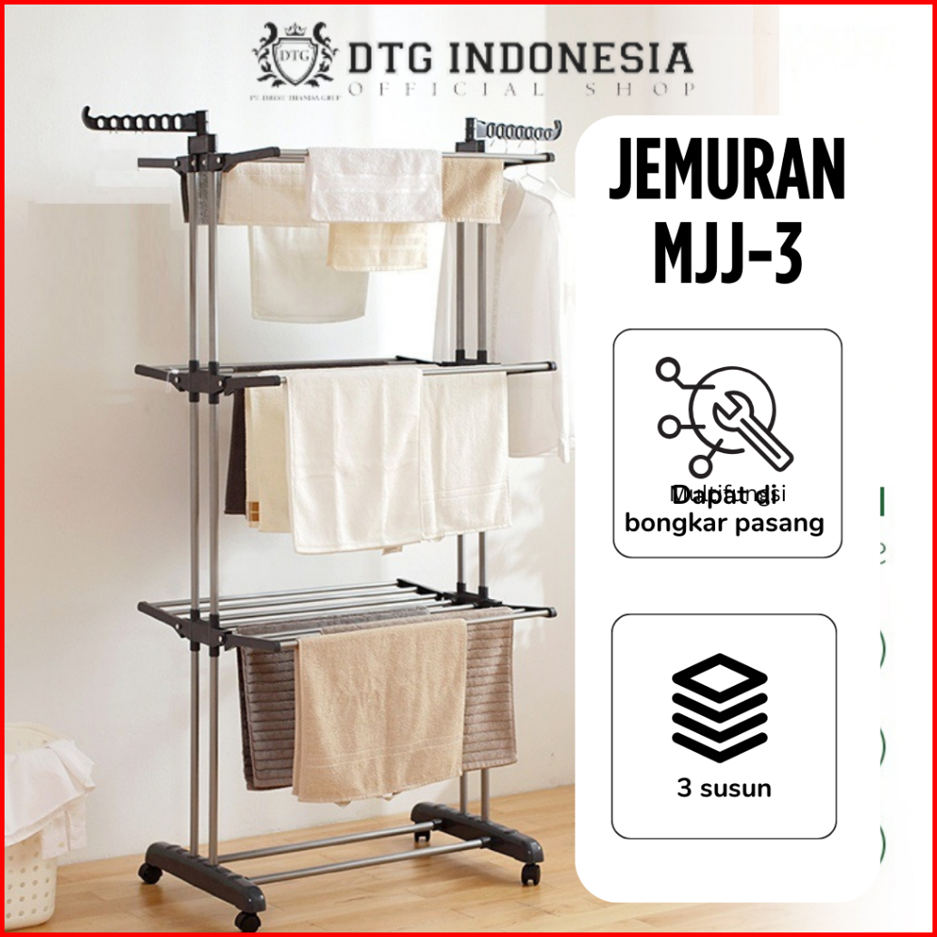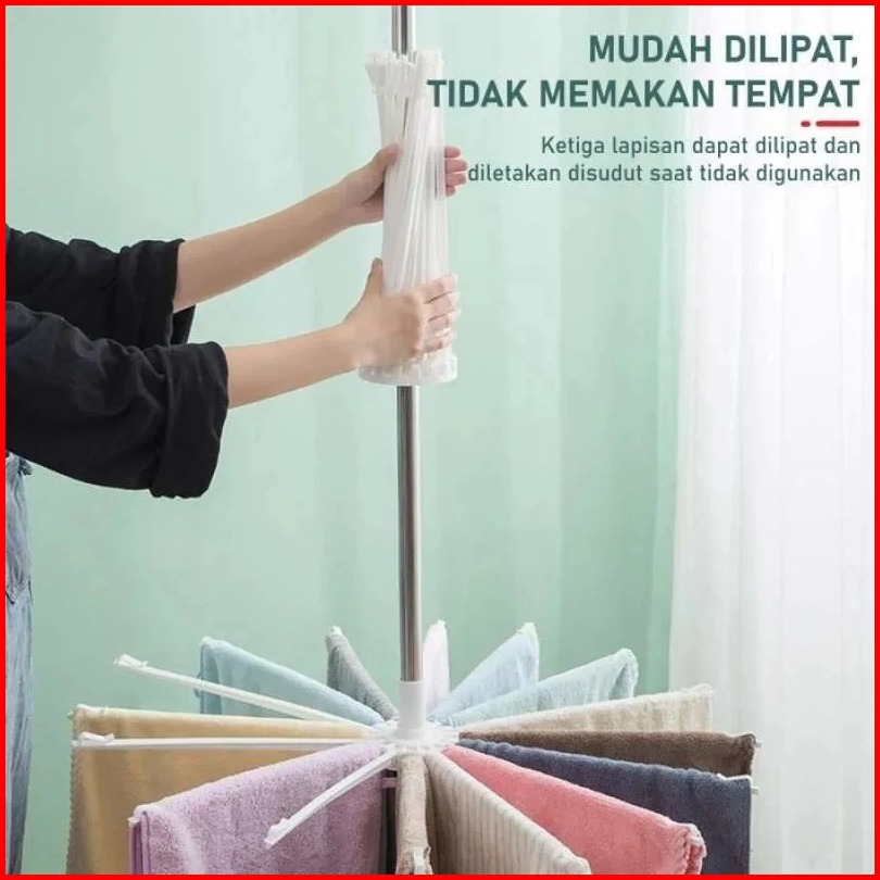 Dtg - Jemuran Menara Lipat Model Menara 3 Susun Jemuran Baju 3 Tingkat Jemuran Korea 3 Tingkat Jemuran Baju Lipat Mjj-3