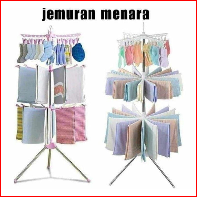 Jemuran Menara Baju Bayi 3 Susun Tripod Dengan Hanger Rotasi