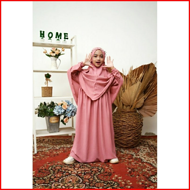 Qutaylah Syar I Free Cadar Set Anak Gamis Muslim Anak Cringkel Air Flow Abaya