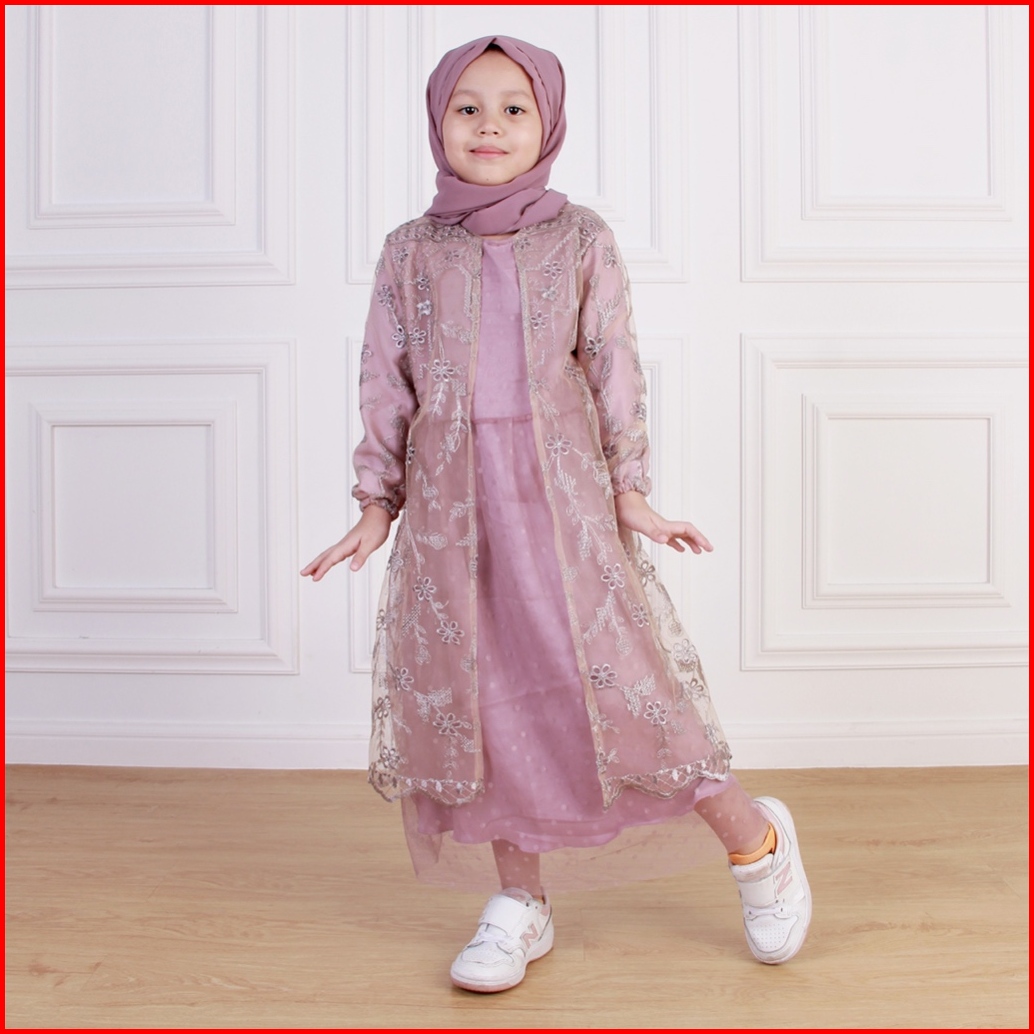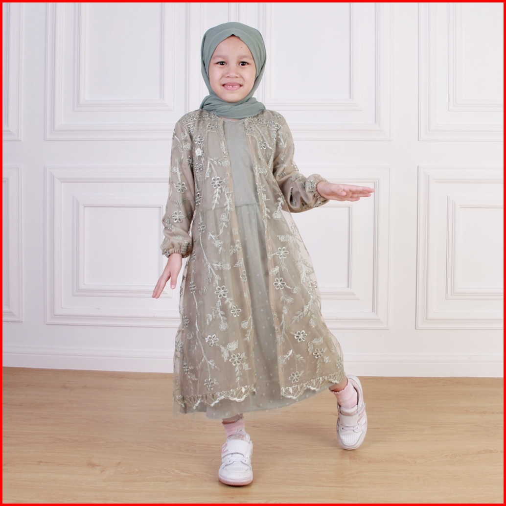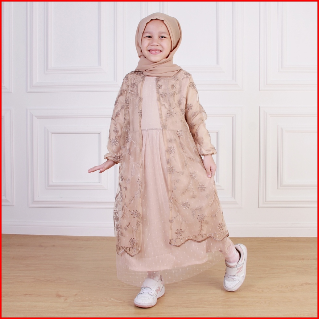 Dungdungkids Gamis Anak Jesica Shakila Mix Tile Dot Bordir Free Pashmina Tali 3 - 11 Tahun