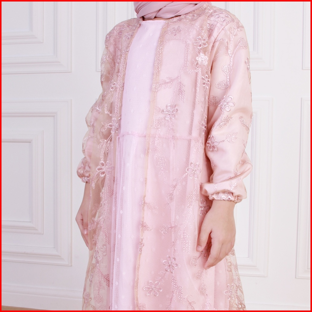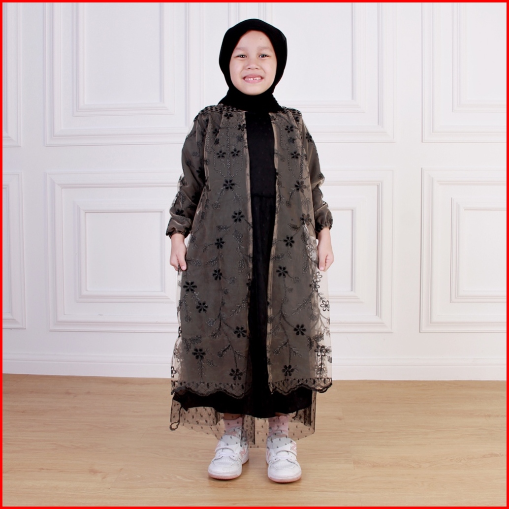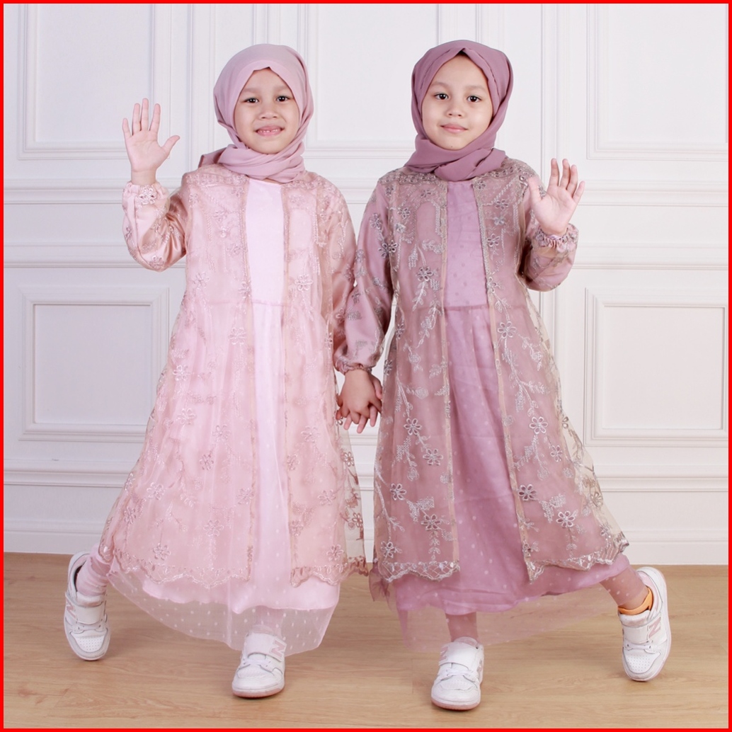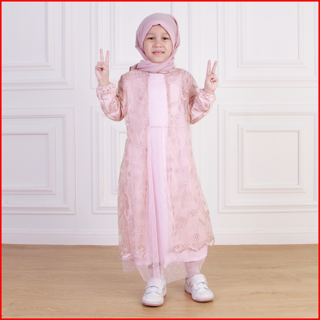 Dungdungkids Gamis Anak Jesica Shakila Mix Tile Dot Bordir Free Pashmina Tali 3 - 11 Tahun