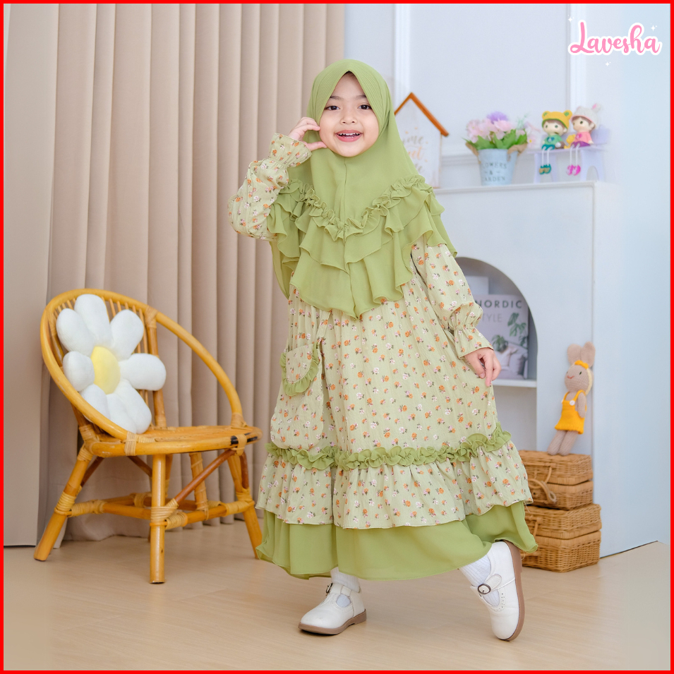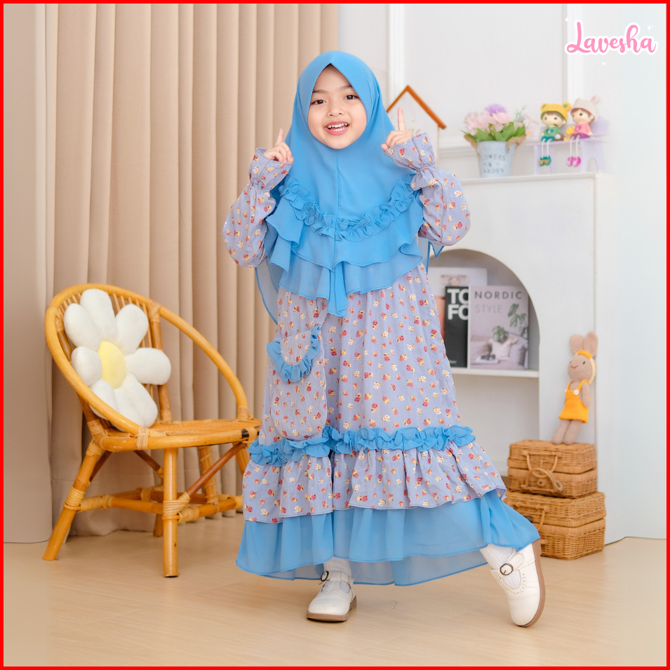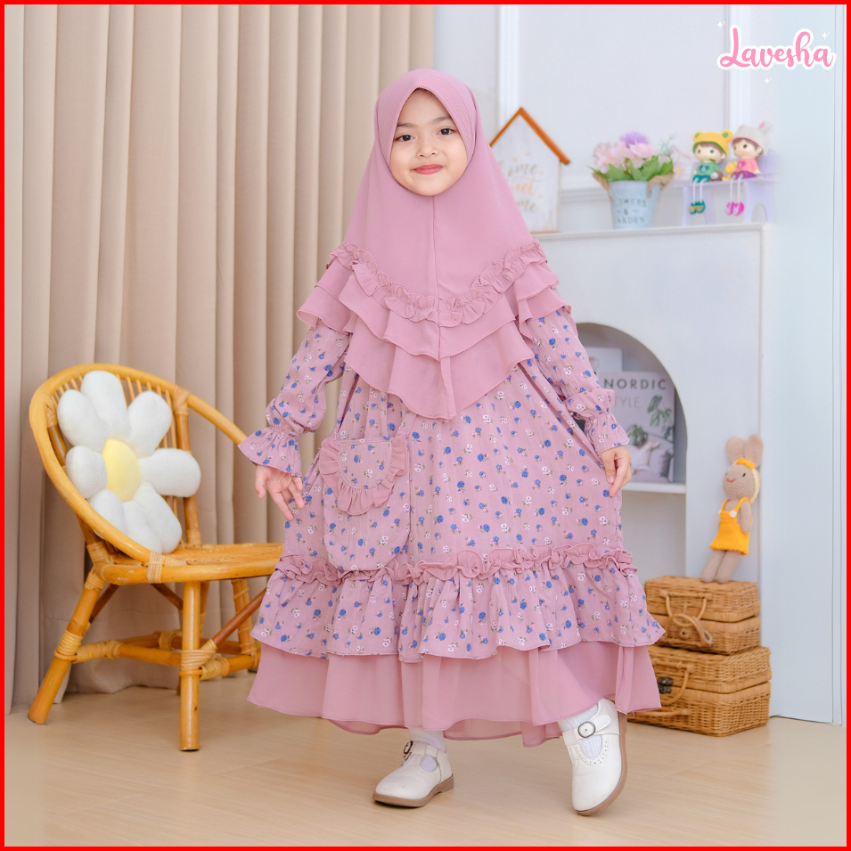 Lavesha Kids - Syamila Gamis Syari Set Free Tas Cantik Crinkle Aleva Mix Ceruty Babydol Premium