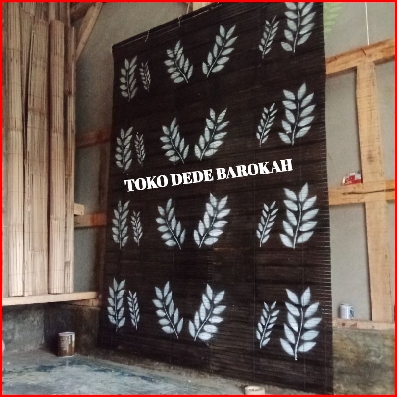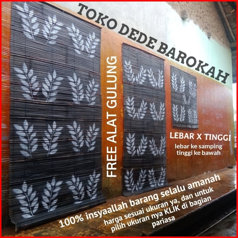 Tirai Bambu Motif Krey Gulung Outdoor Ukuran 2x2m Plus Tali Ring Set