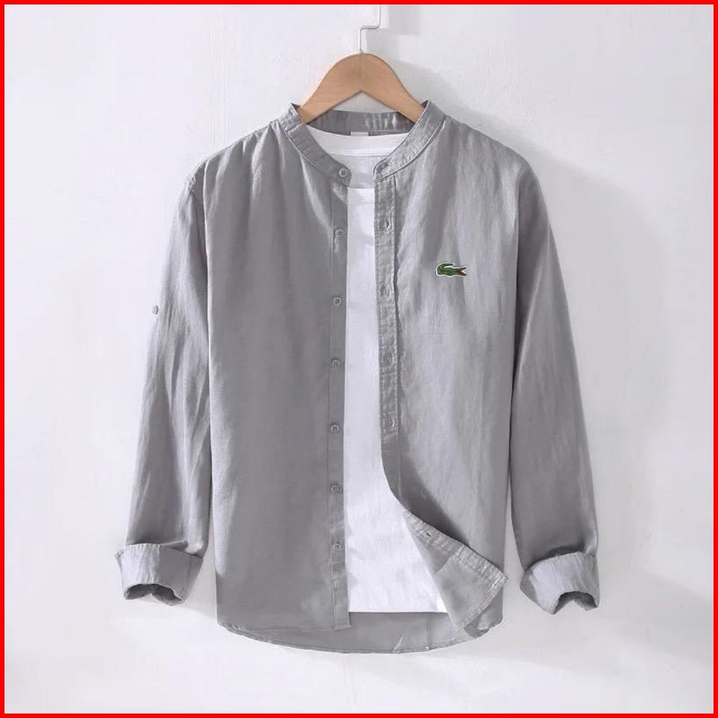 Promo Kemeja Koko Pria Polos Lengan Panjang Bordiran Buaya Premiun Kemeja Koko Pria Lengan Panjang Ukuran Dari S M L Xl