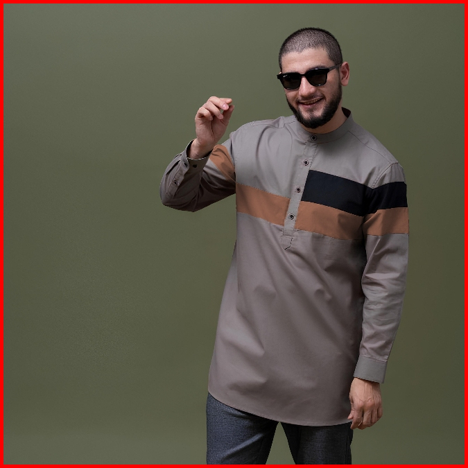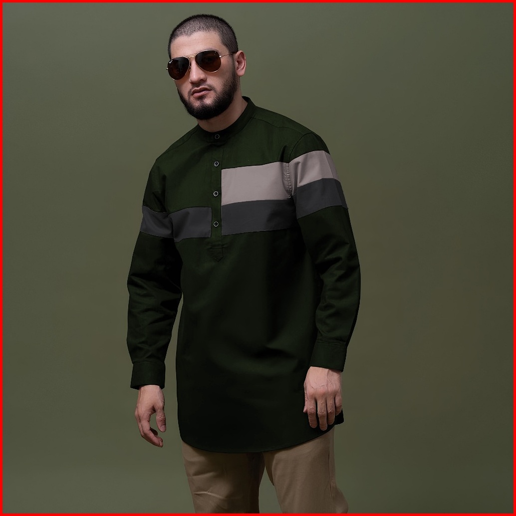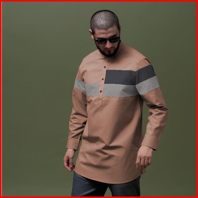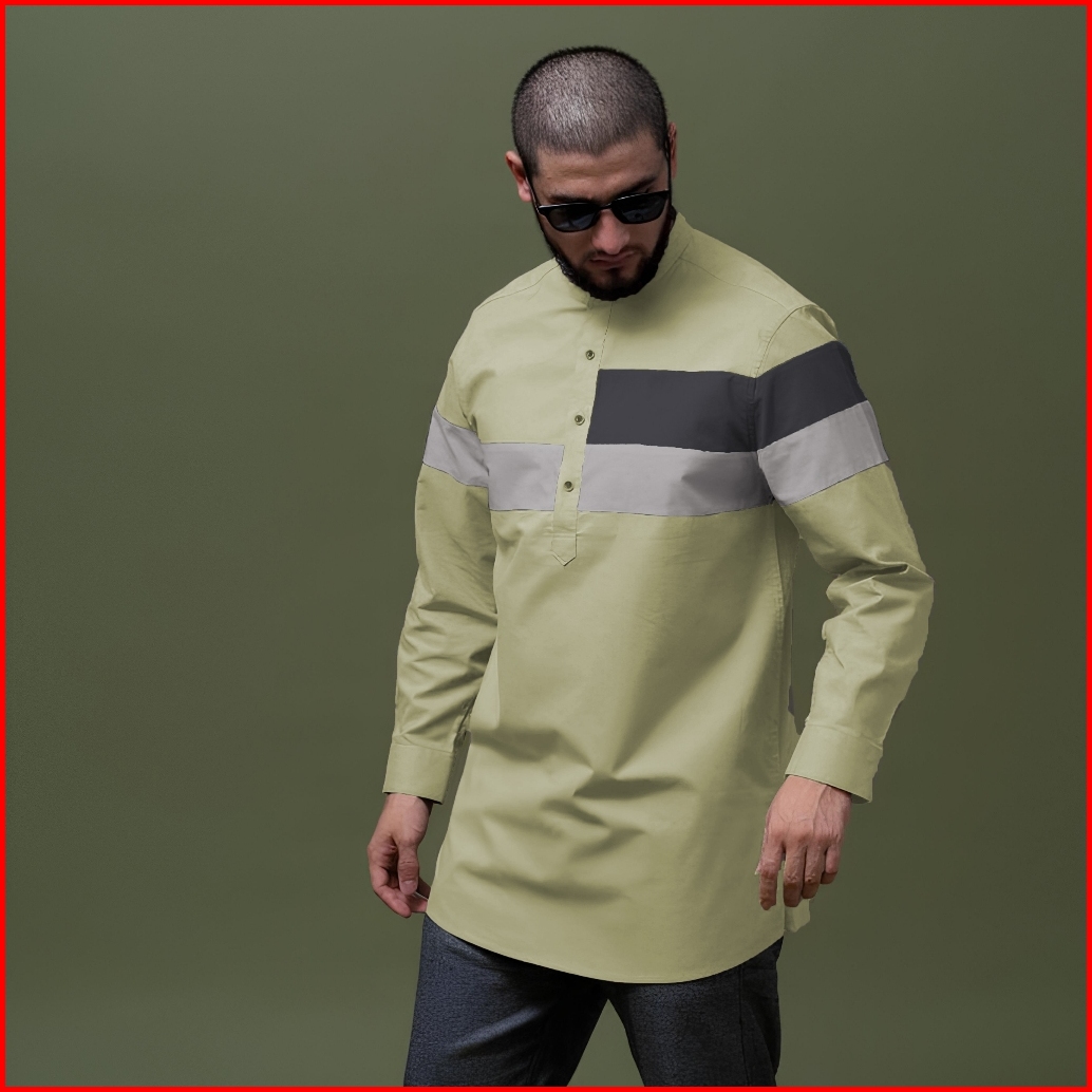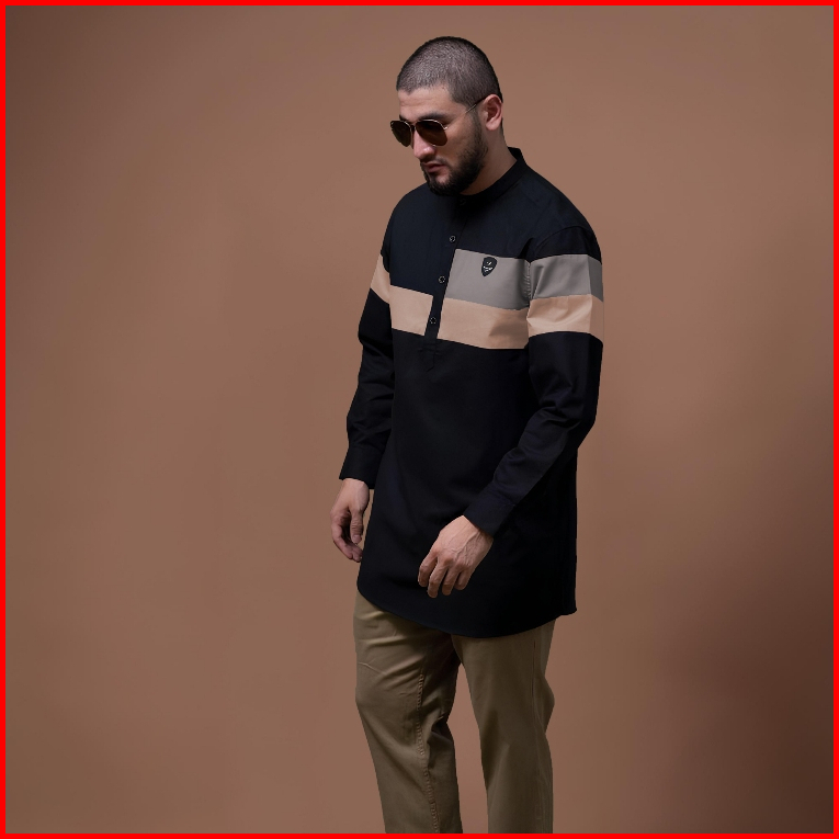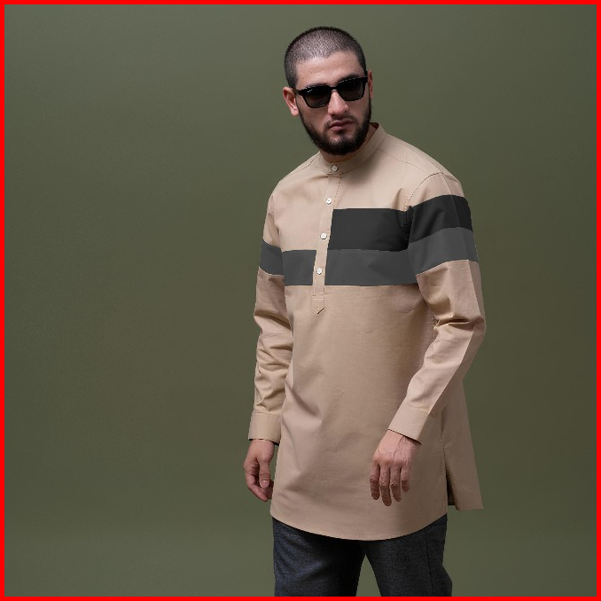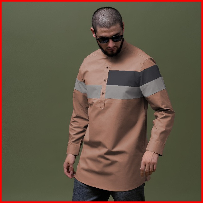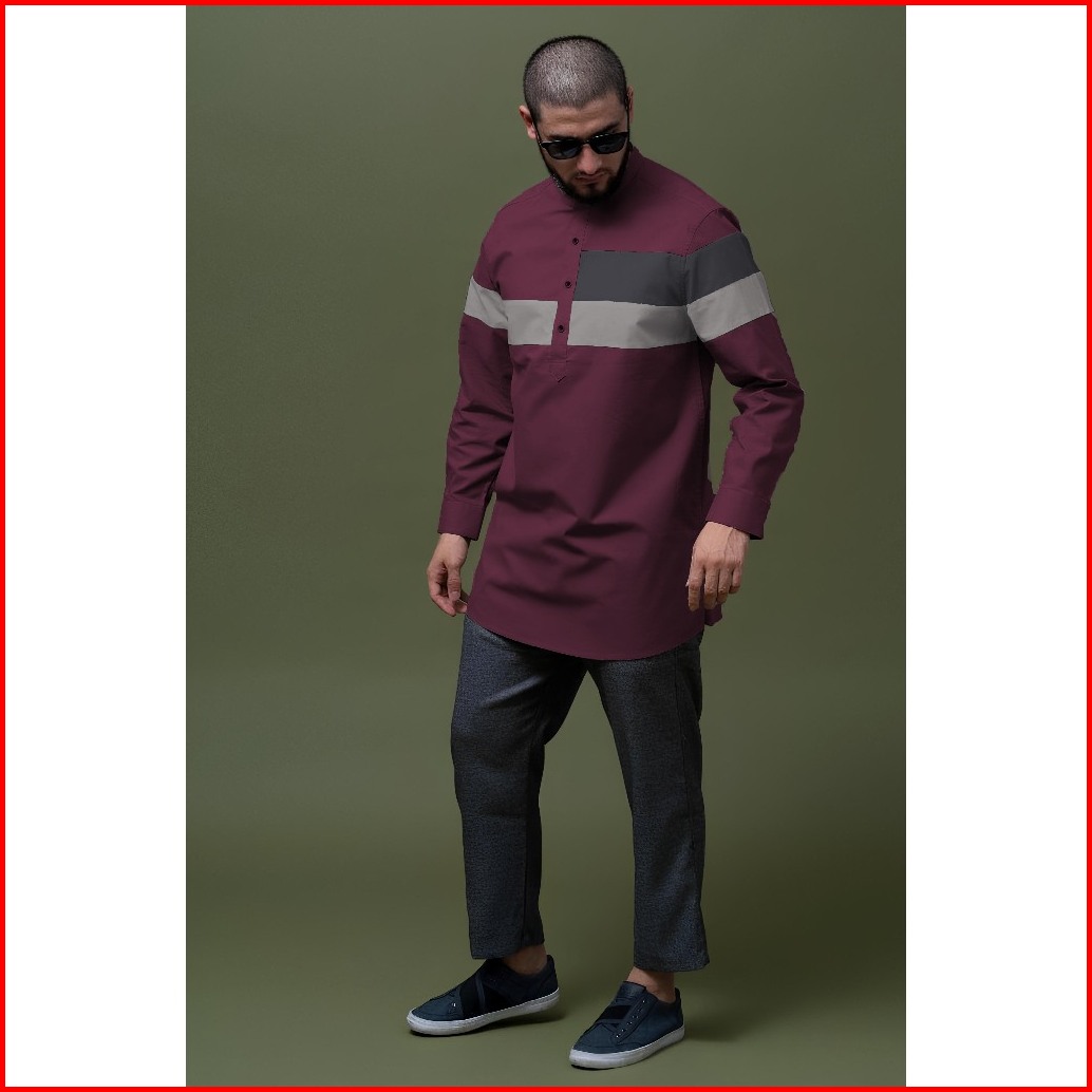 Baju Koko Pria Dewasa Atasan Muslim Pria Lengan Panjang Koko Kurta Kombinasi Simpel