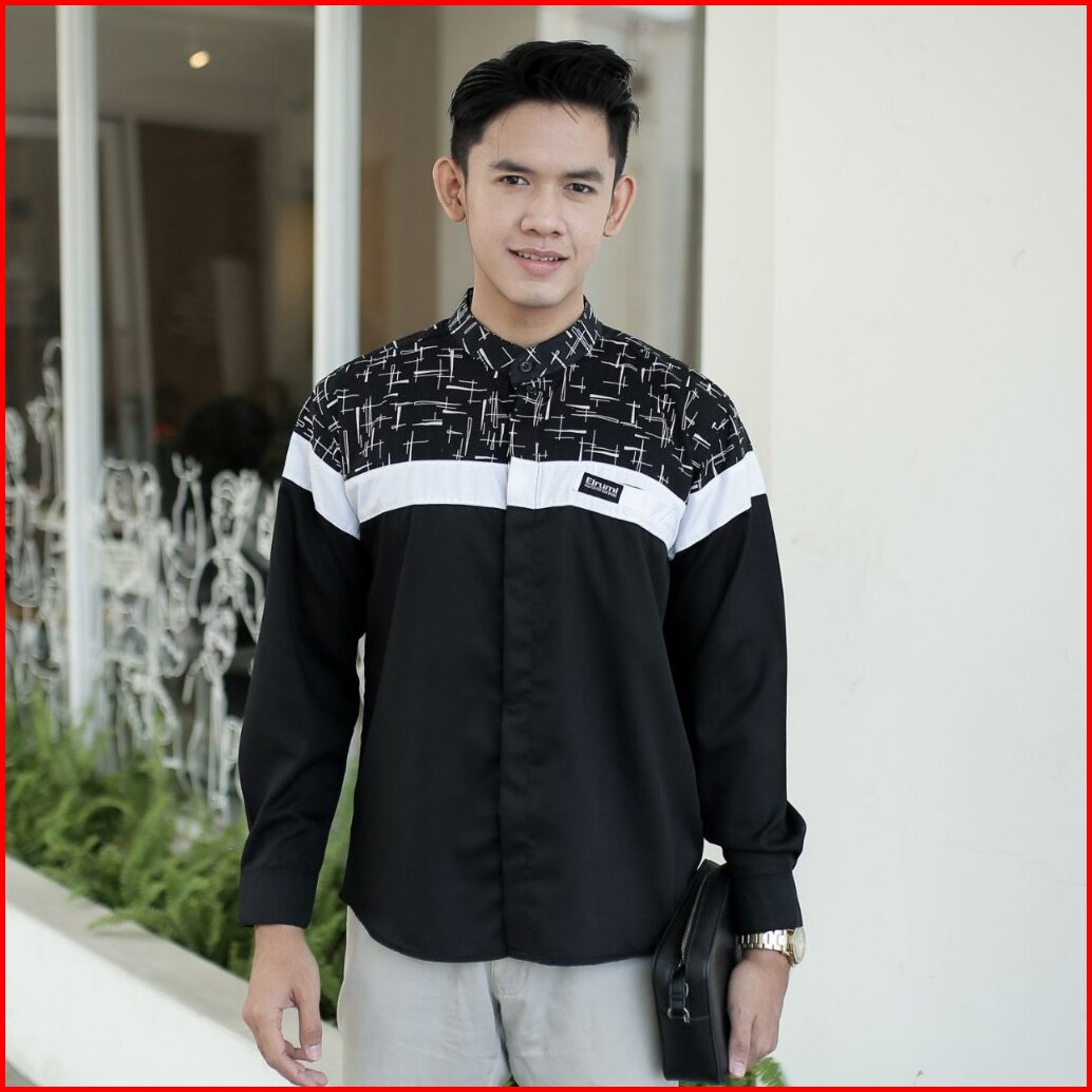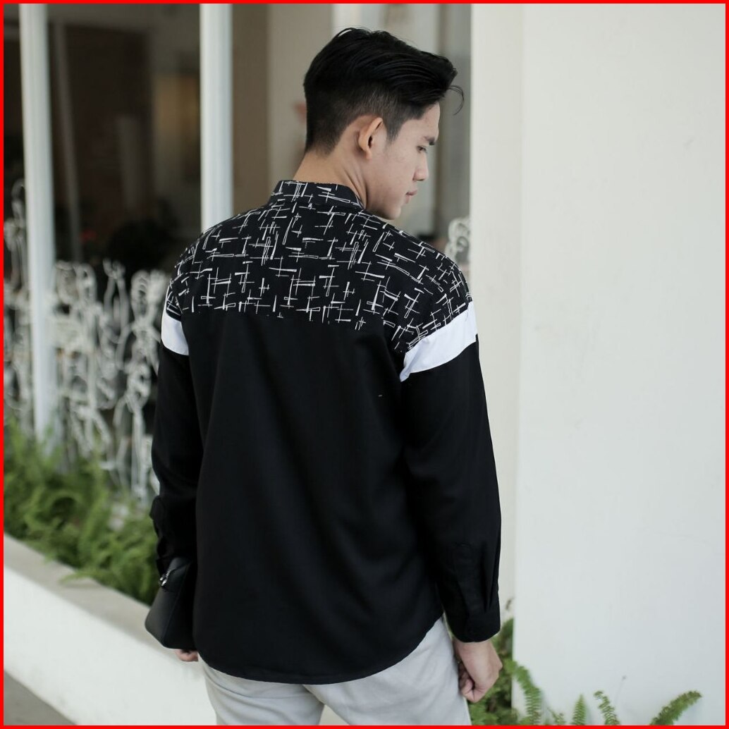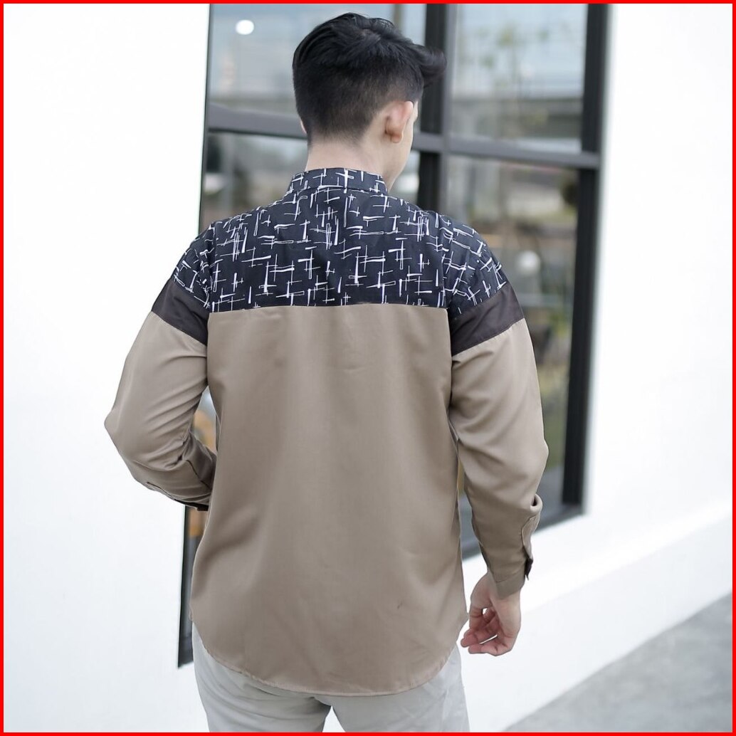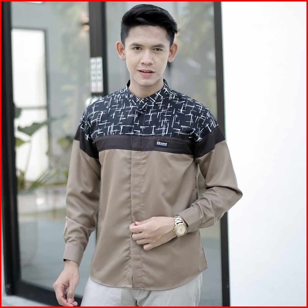 Baju Koko Pria Elrumi Lengan Panjang Warna Abu-abu Kombinasi Batik Motif Senopati