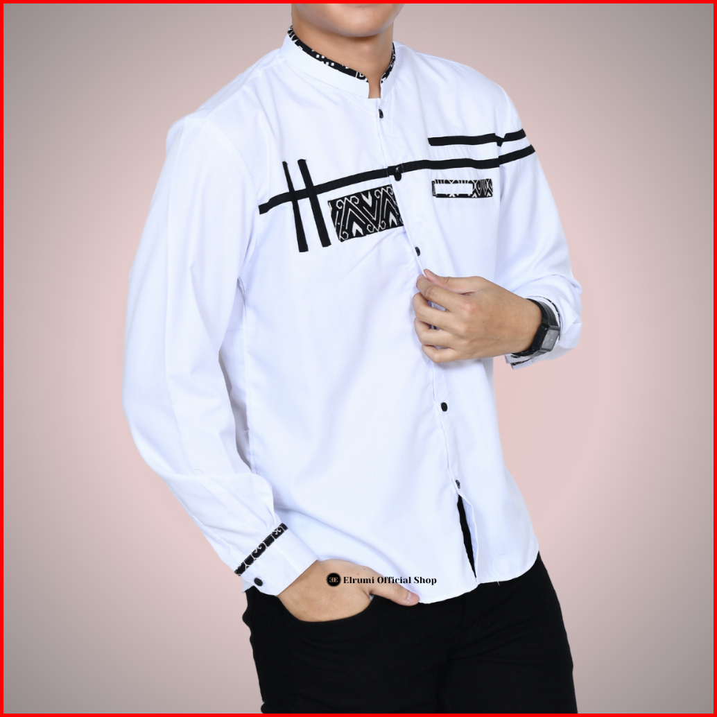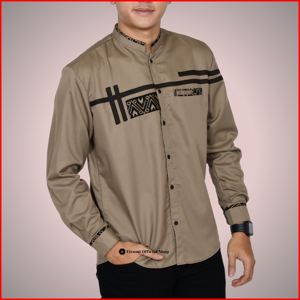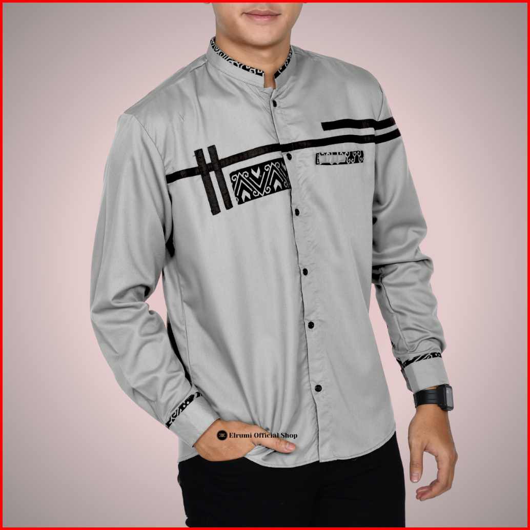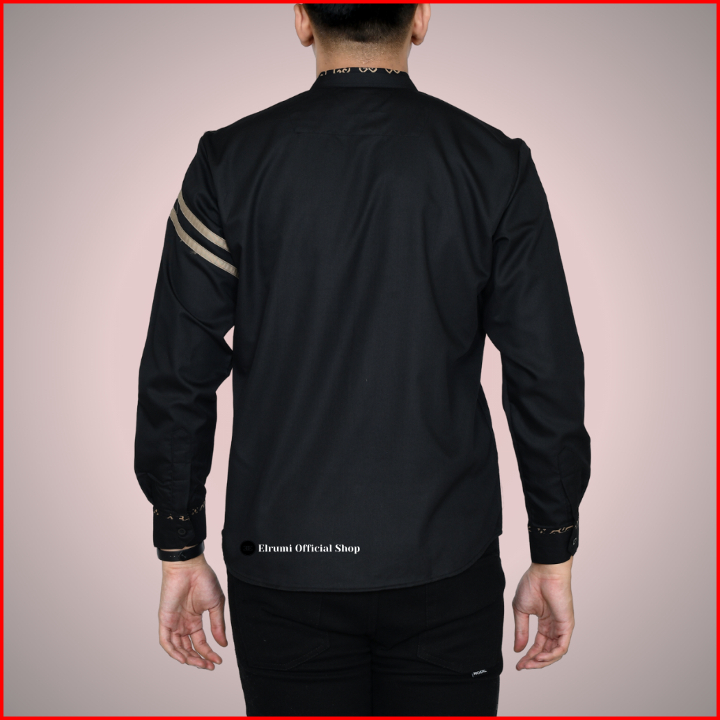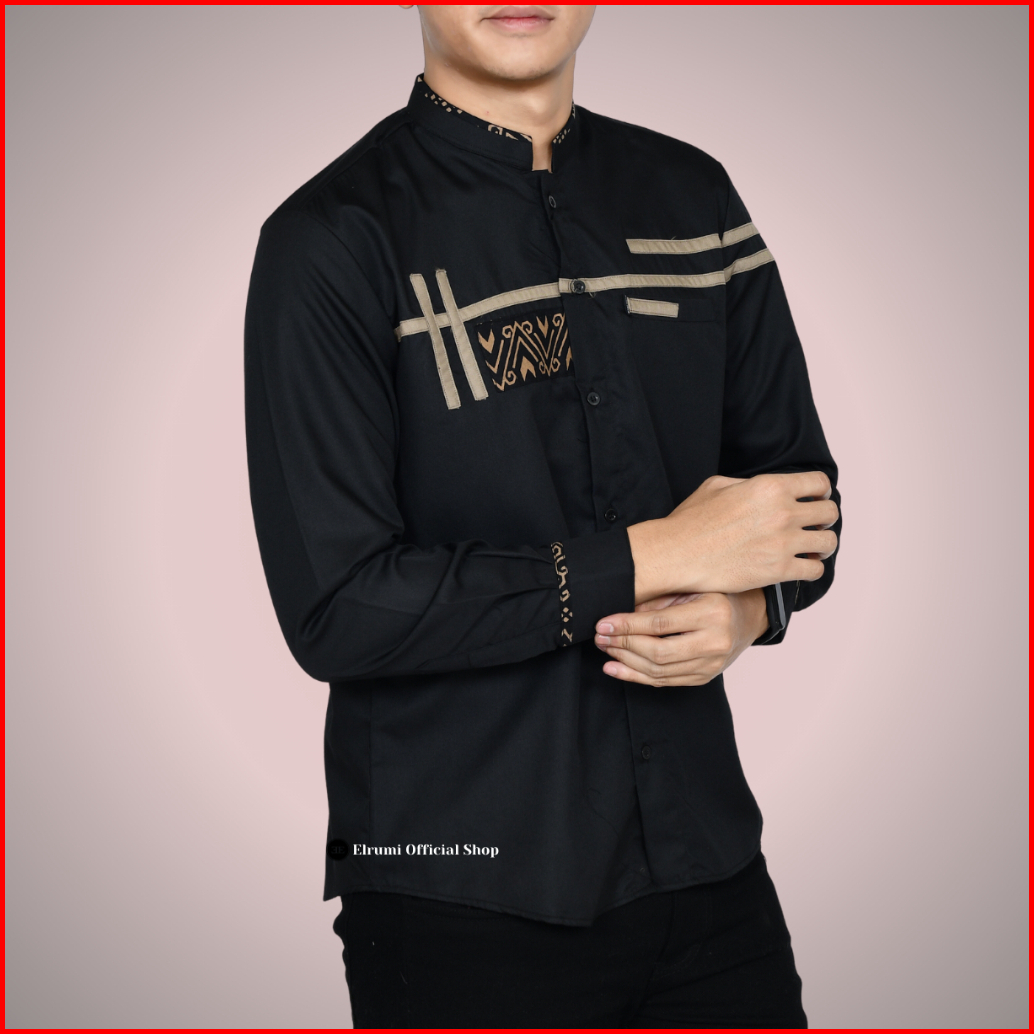 Baju Koko Pria Dewasa Lengan Panjang Hitam Batik Motif Zoled