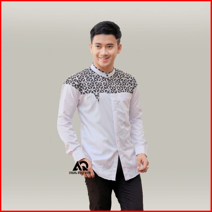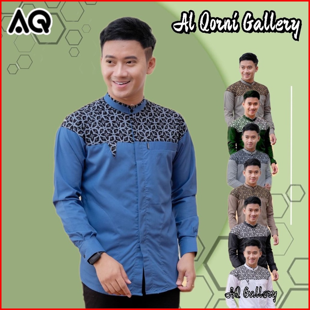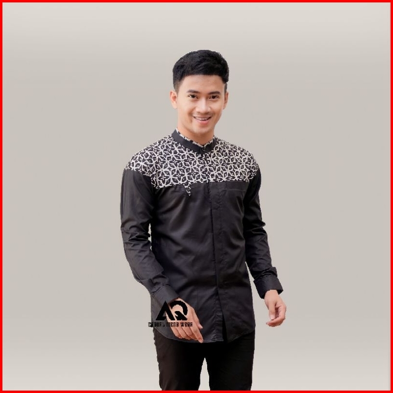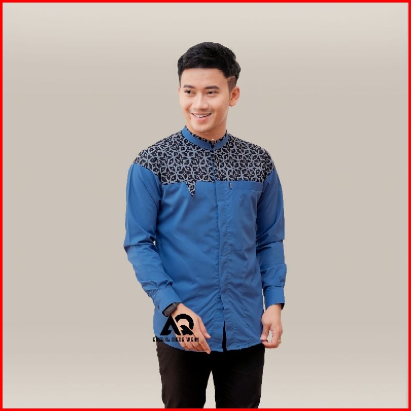 Koko Pria Dewasa Lengan Panjang Baju Muslim Laki Laki Motif Arjuna Kombinasi Batik Modern Bahan Katun Premium