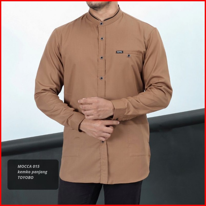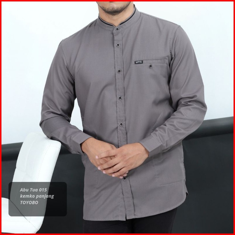Saviq T15 Kemeja Koko List Lengan Panjang Bahan Toyobo Warna Hitam Mocca Abu Olive Putih